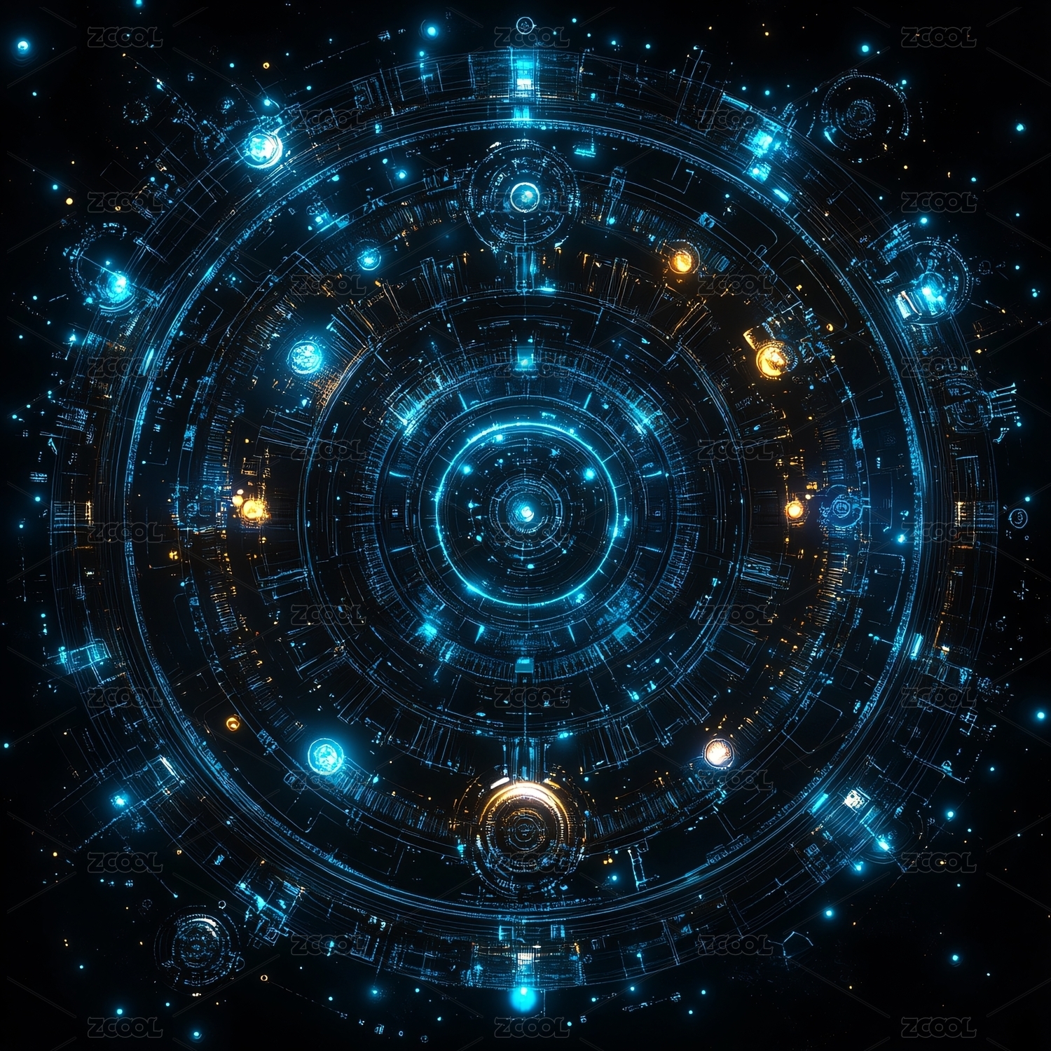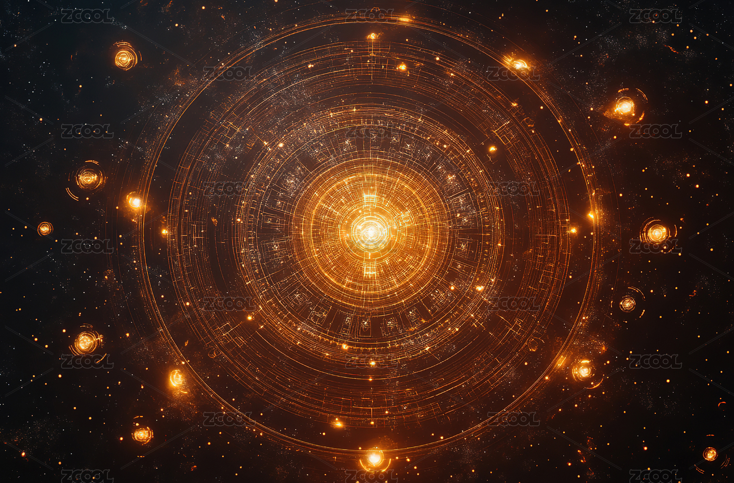 神秘光环与符号的科技艺术场景