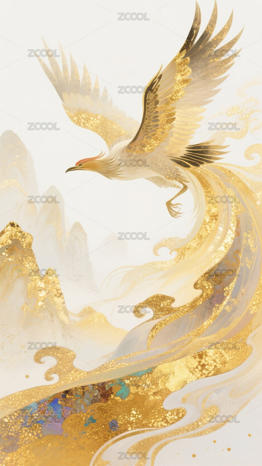凤凰,飞鸟,花卉,插画,图案,艺术,唯美,古风,祥瑞,自然