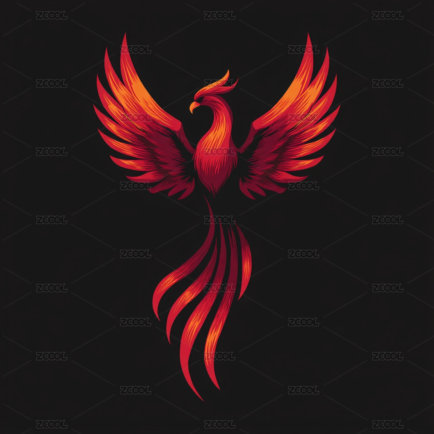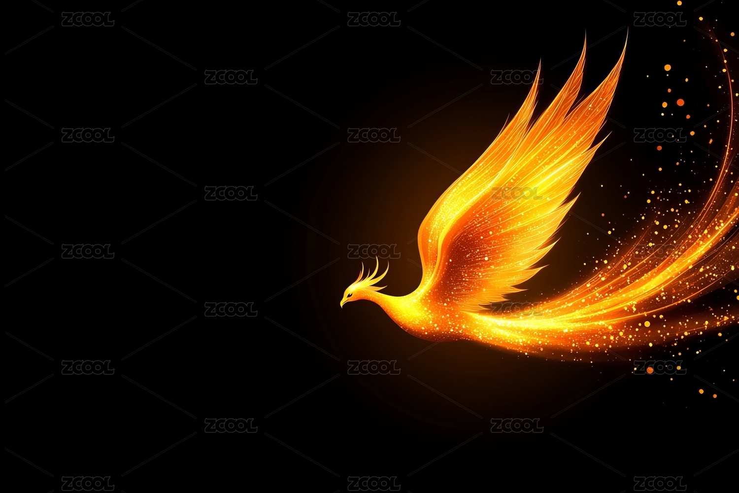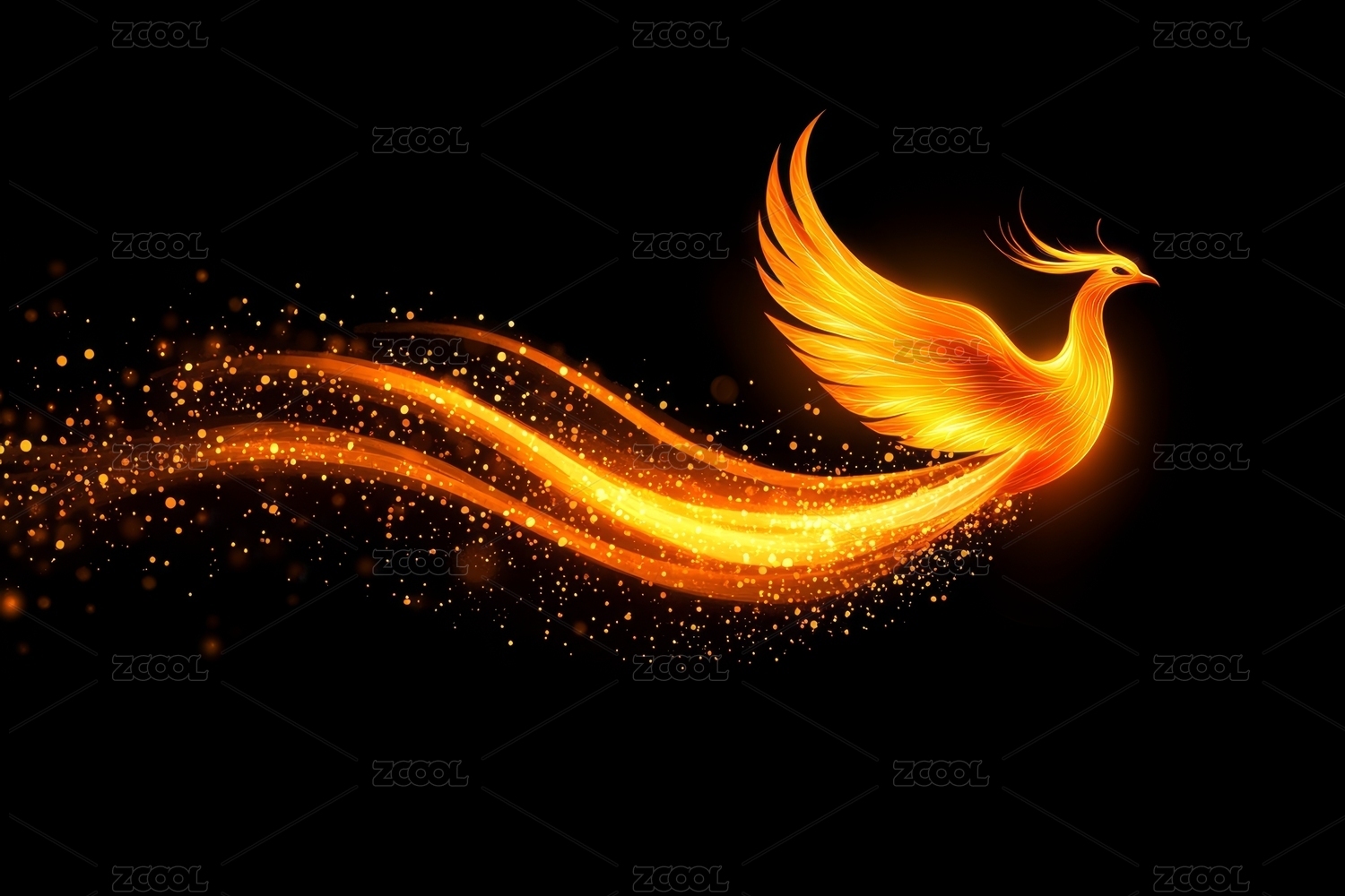 凤凰,火焰,插画,图案,黑色背景,抽象,元素,艺术,设计,图形