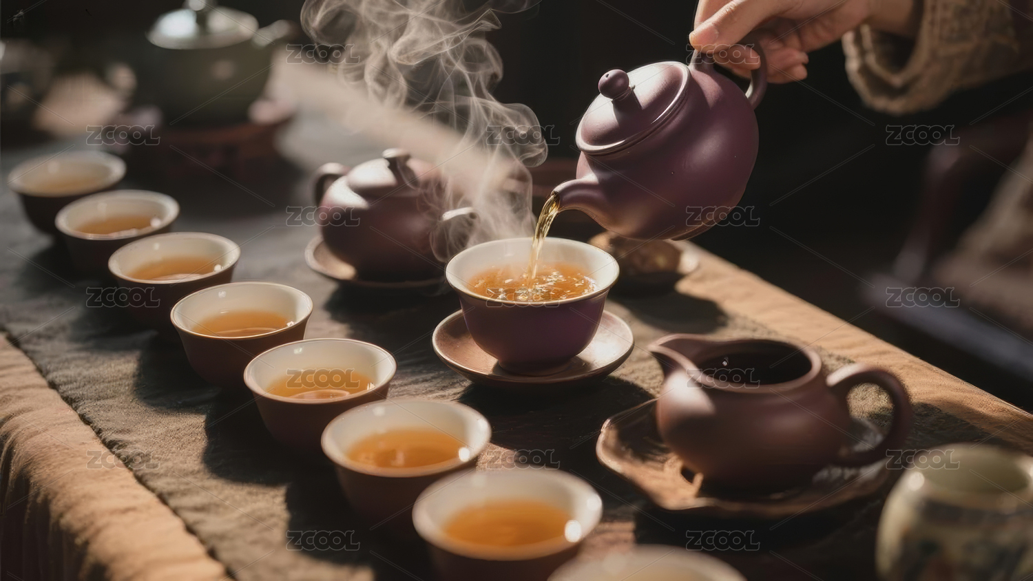 茶壶倒茶热气袅袅