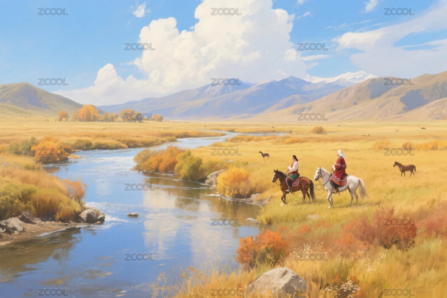 山脉, 蓝天, 白云, 宁静, 自然, 风景, 美丽, 和谐, 生态, 环境