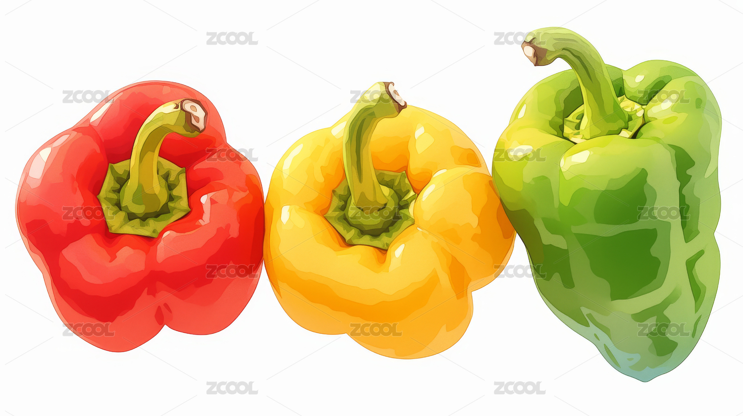 3D卡通蔬菜三种颜色的彩椒甜椒