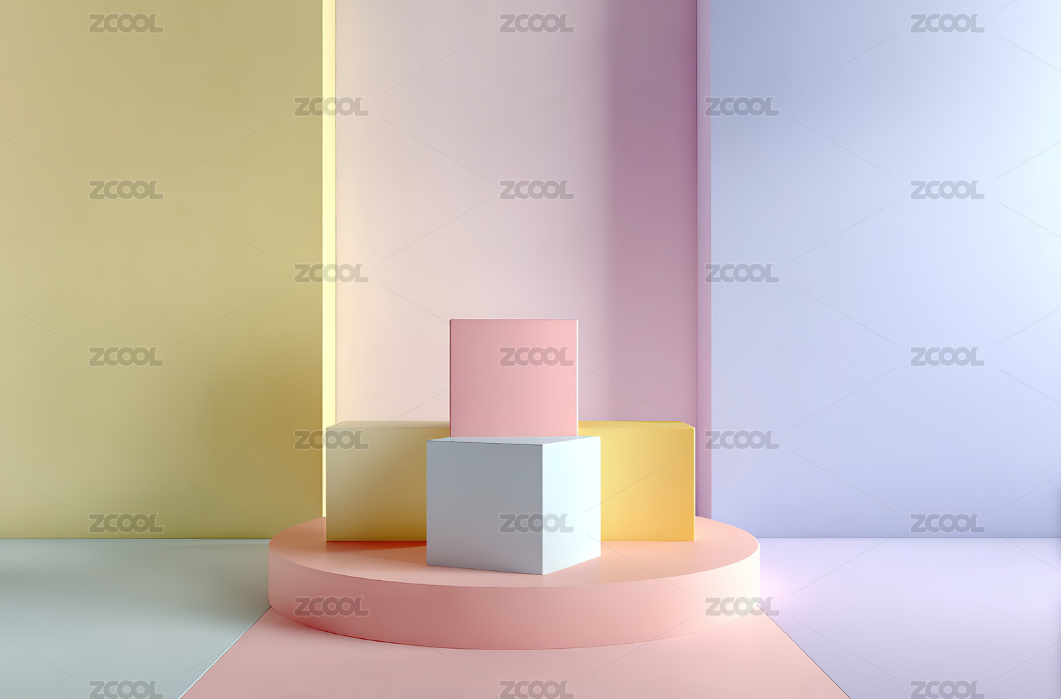 梦幻粉蓝渐变色展台底座电商3D效果图