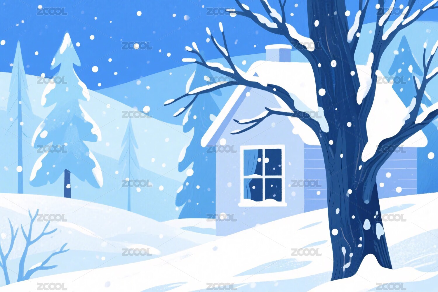 雪景,房屋,树木,雪山,雪地,冬天,场景,插画,矢量,背景