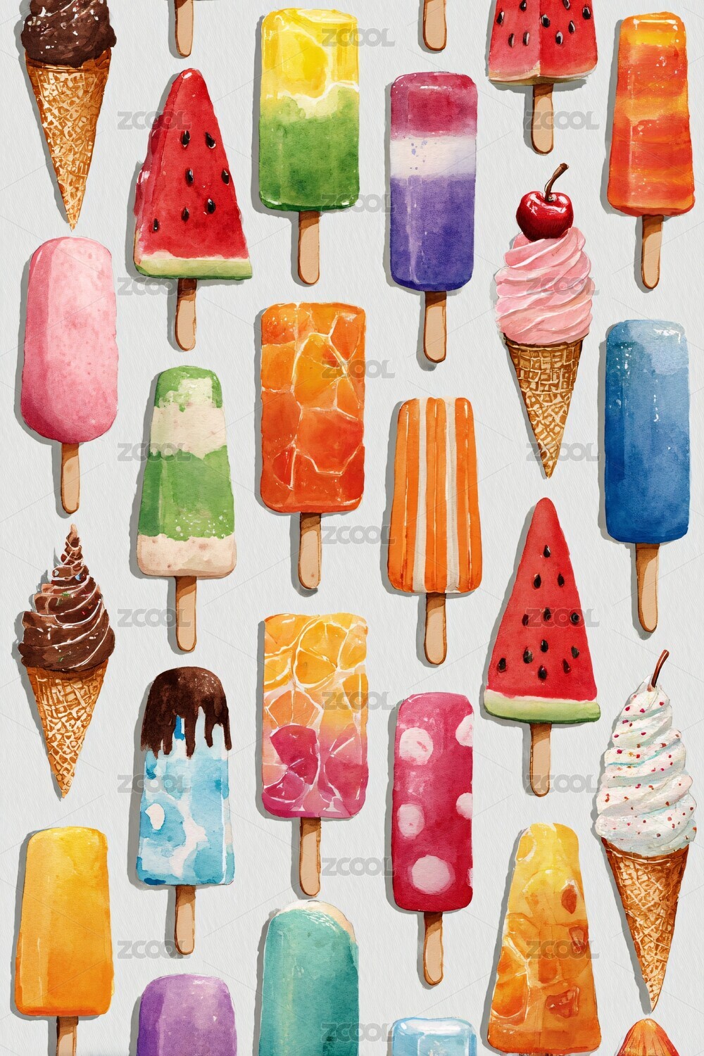 插画,夏日,度假,鸡尾酒,帽子,冰淇淋,墨镜,柠檬,橙子,相机
