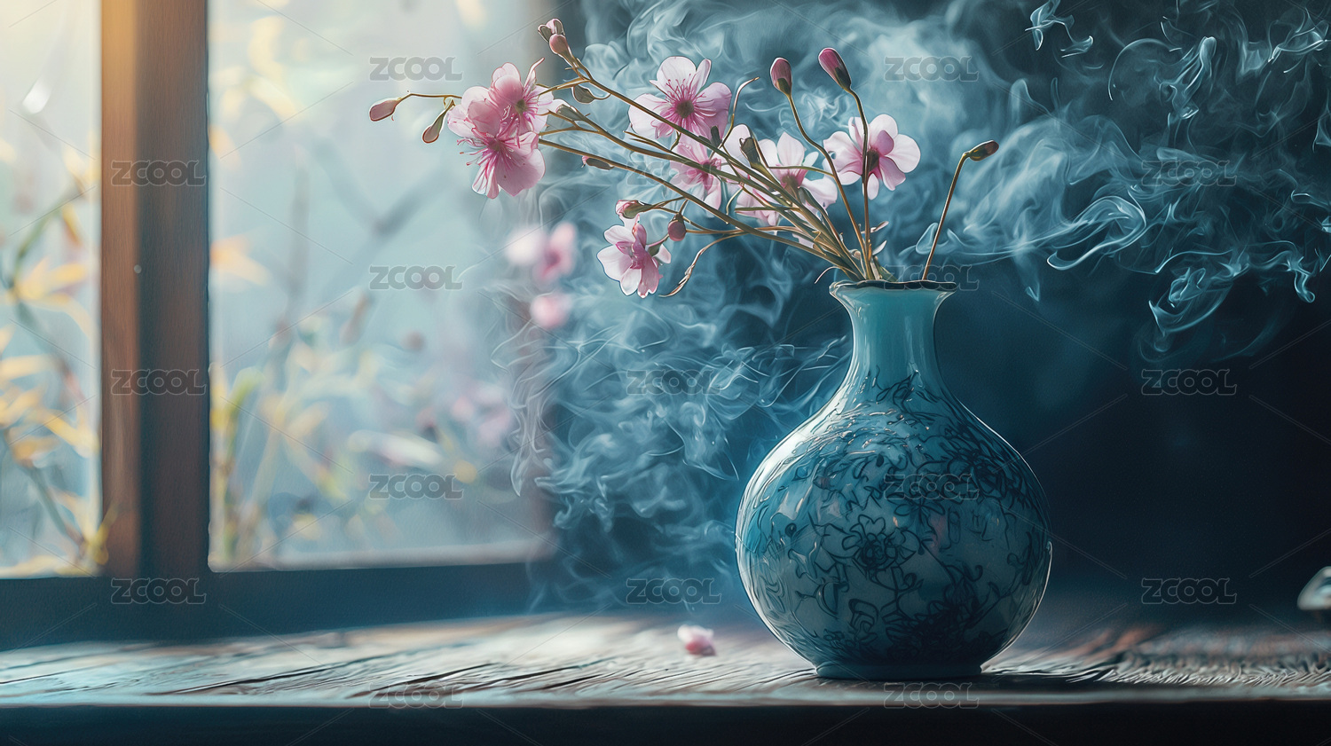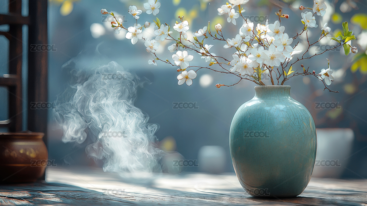 花瓶,插花,花卉,烟雾,禅意,冥想,放松宁静,室内安神,侘寂,意境