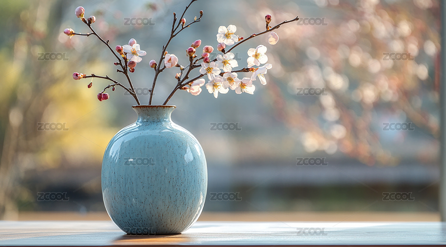 古风中式意境花瓶瓶插桃花壁纸
