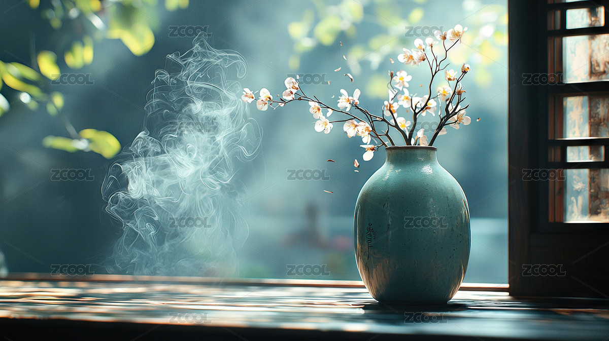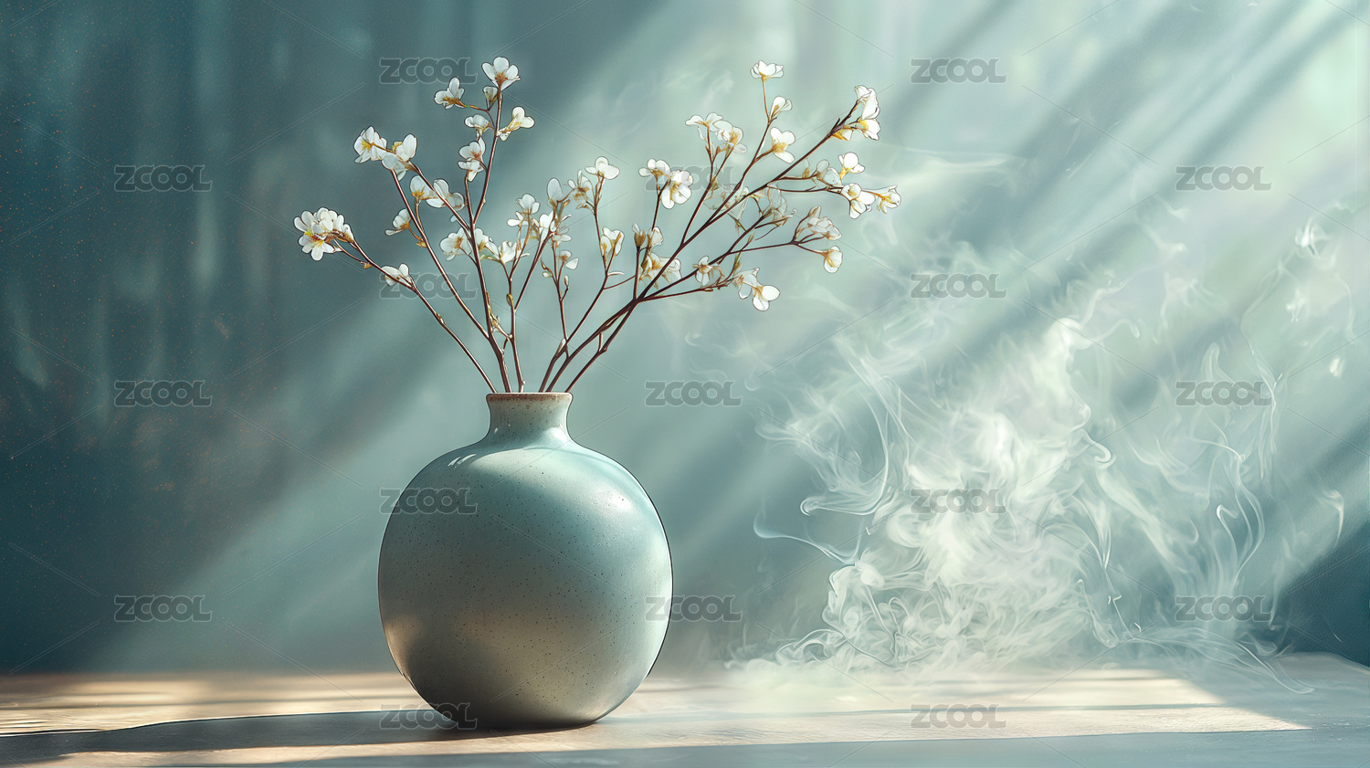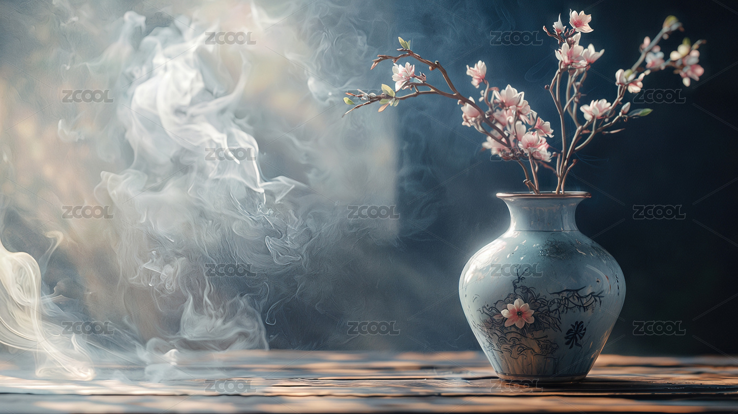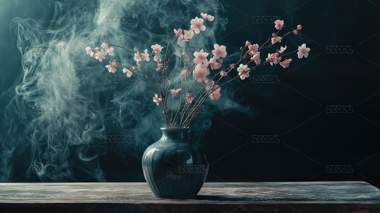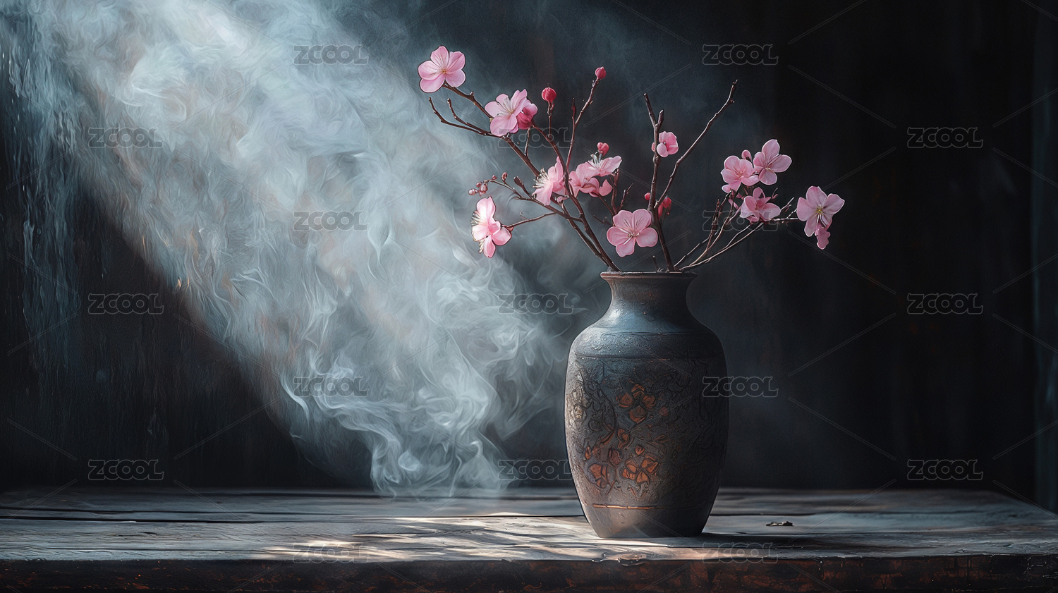 花瓶,插花,花卉,烟雾,禅意,冥想,放松宁静,室内安神,侘寂,意境