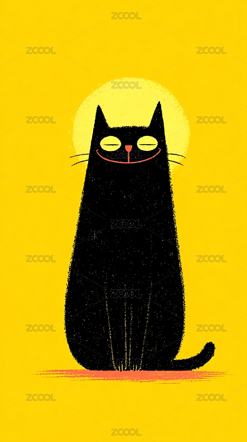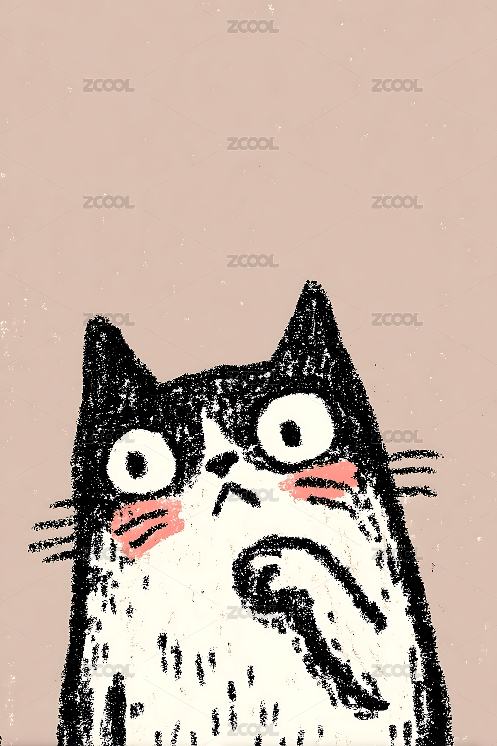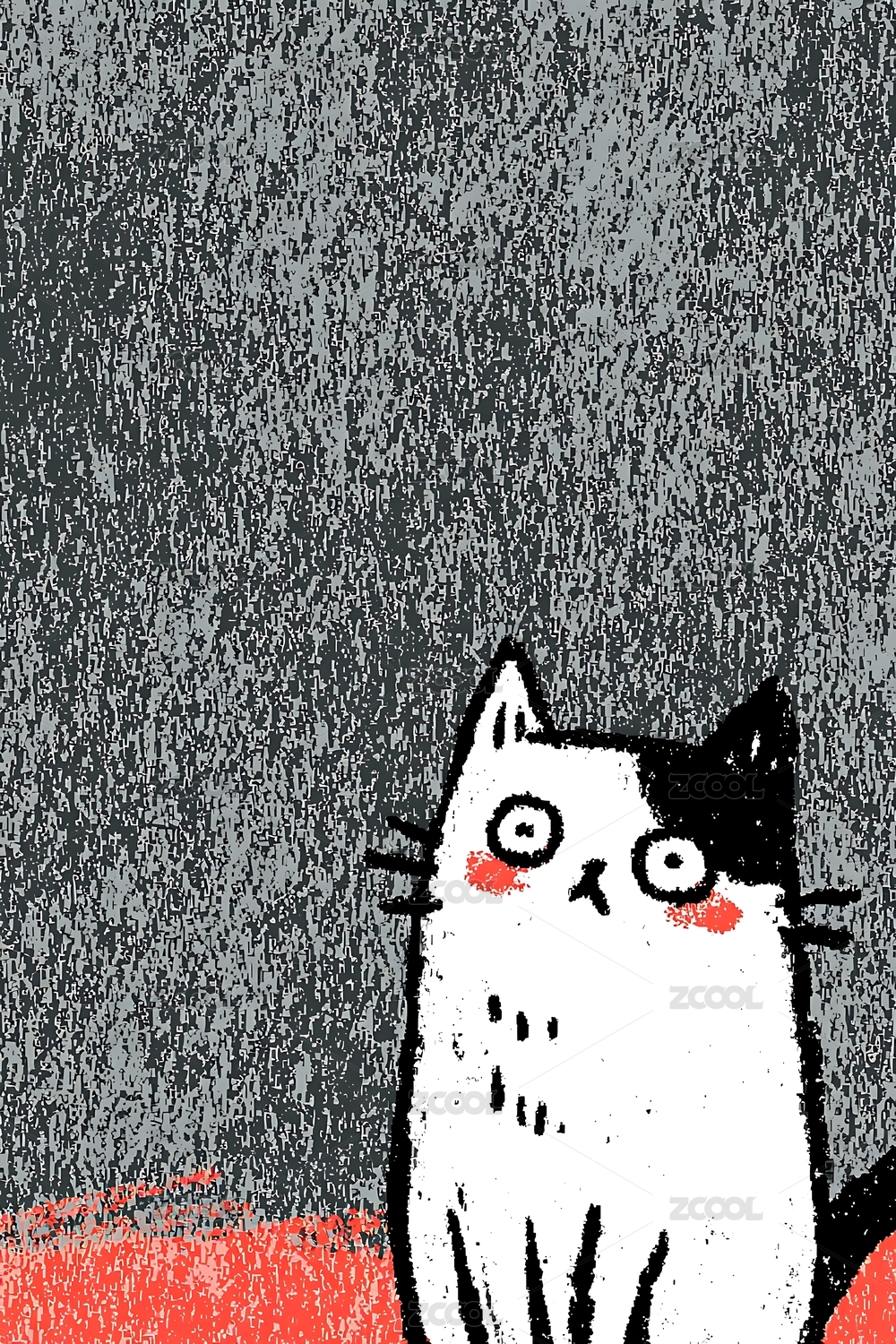 猫咪,插画,可爱,动物,萌宠,黑白,艺术,卡通,猫