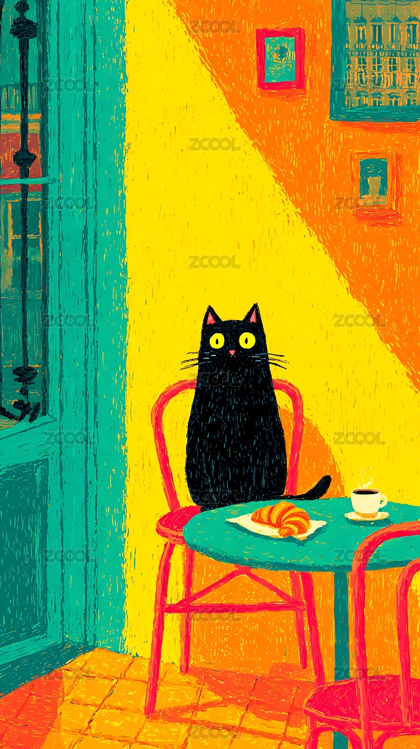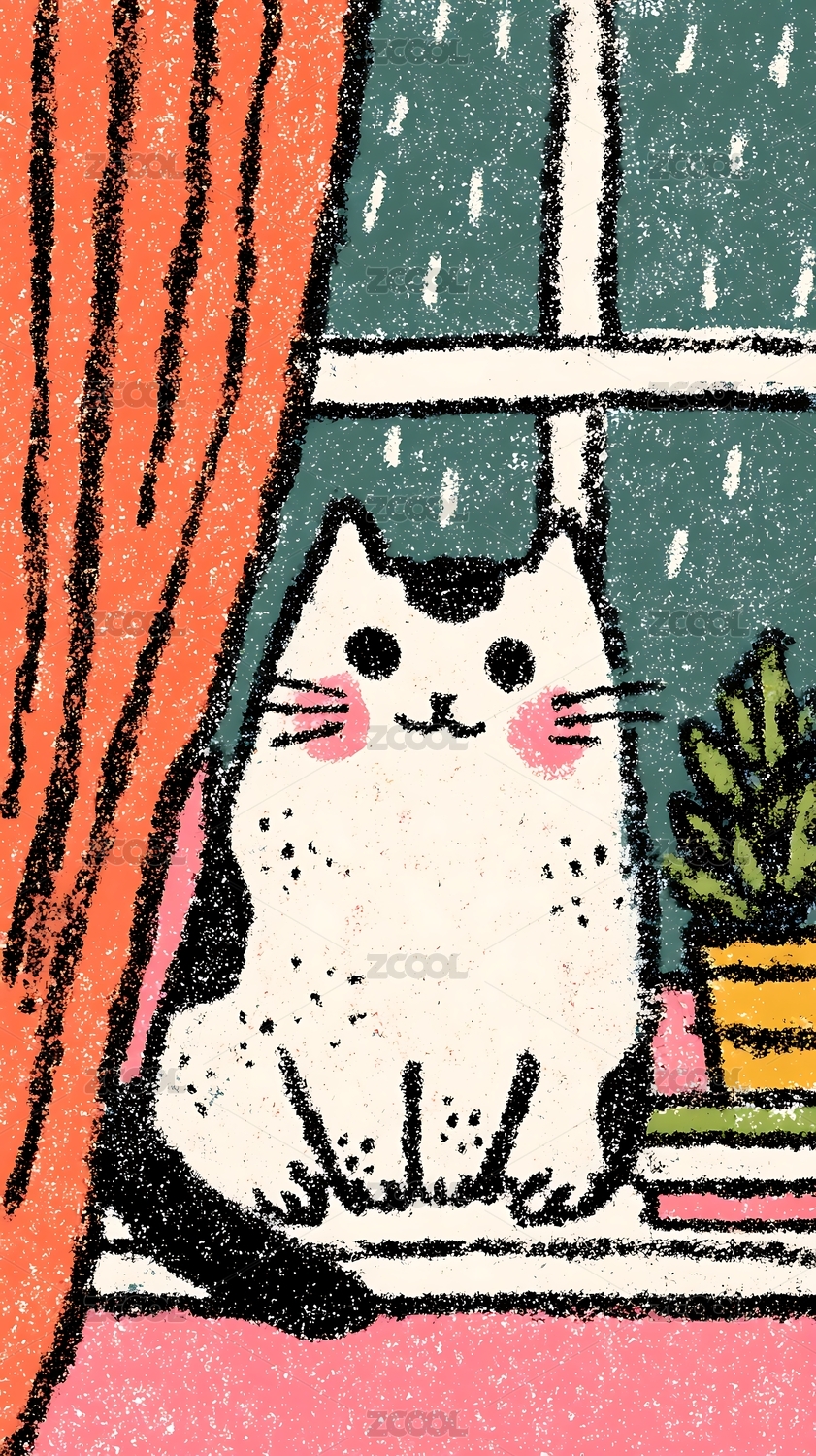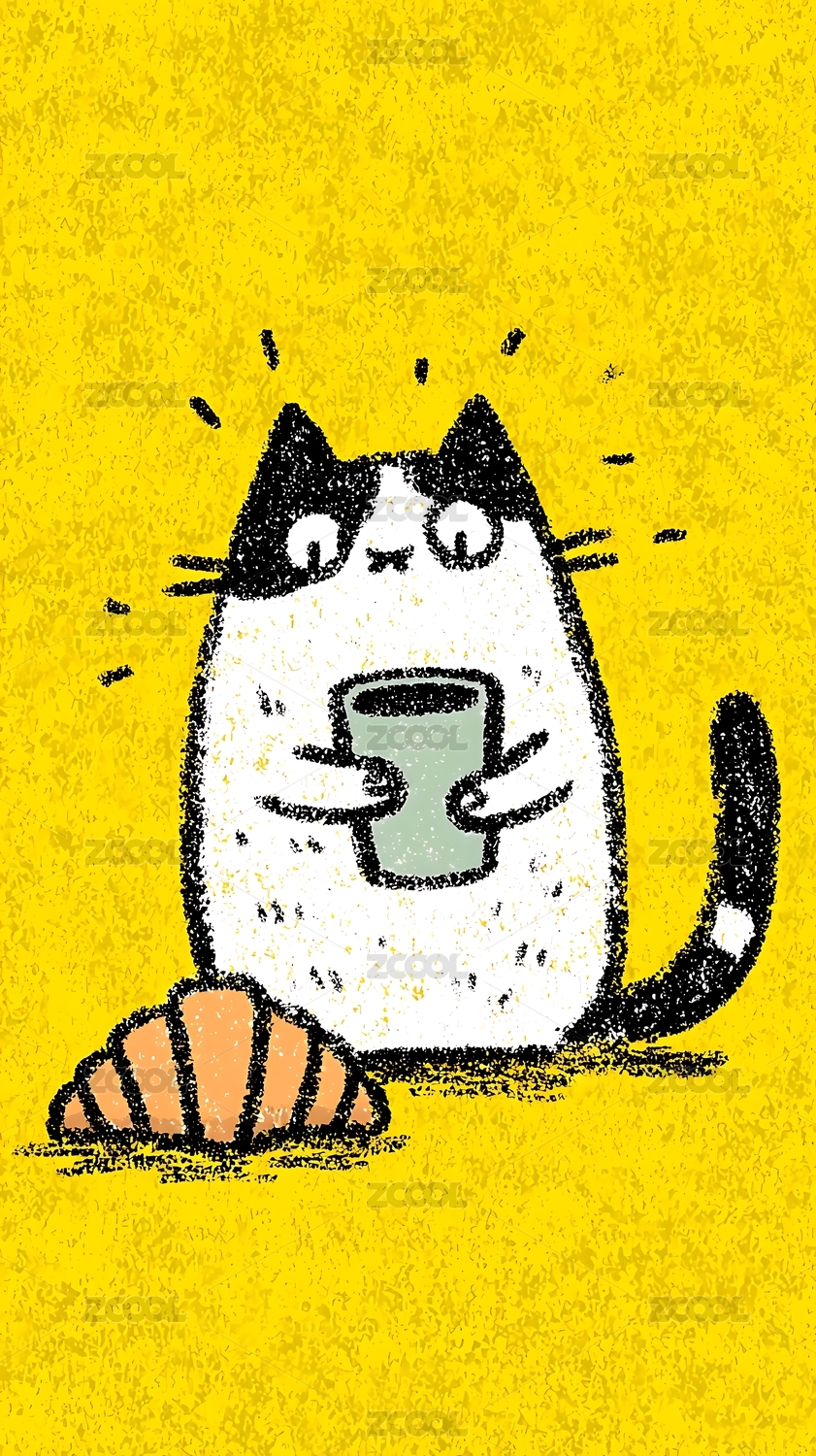 猫咪,插画,可爱,动物,萌宠,黑白,艺术,卡通,猫