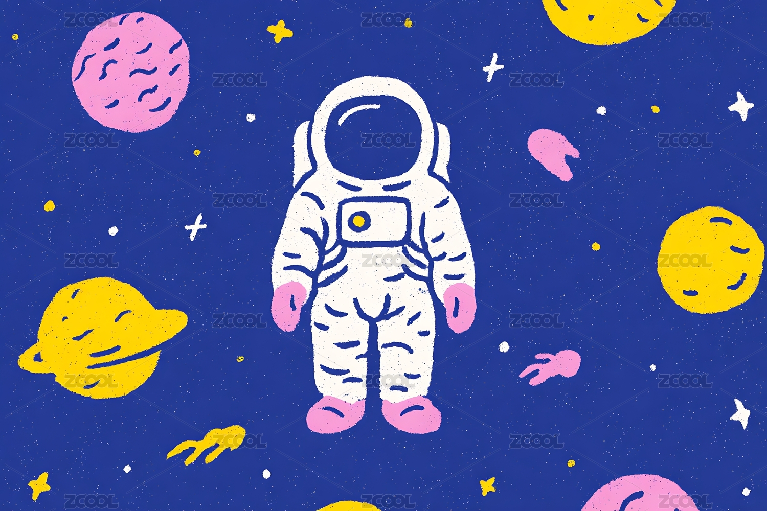 可爱卡通宇航员插画图案