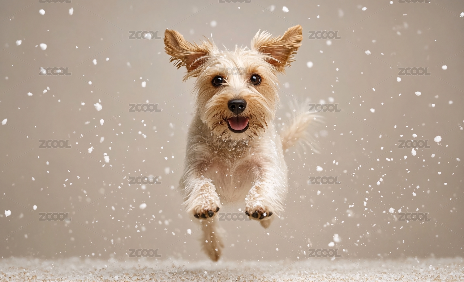 跳跃的小狗雪景图