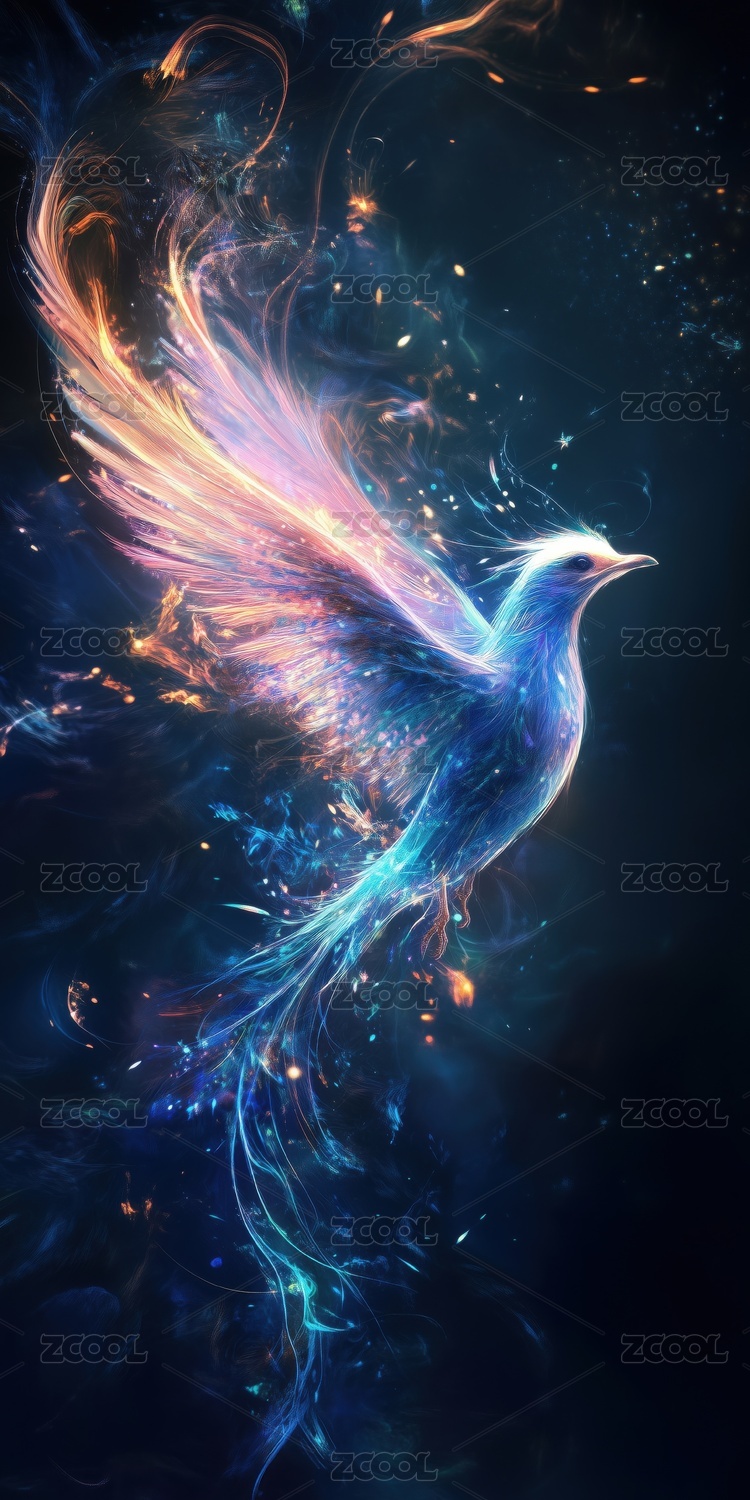 蓝色火焰凤凰翱翔于黑夜