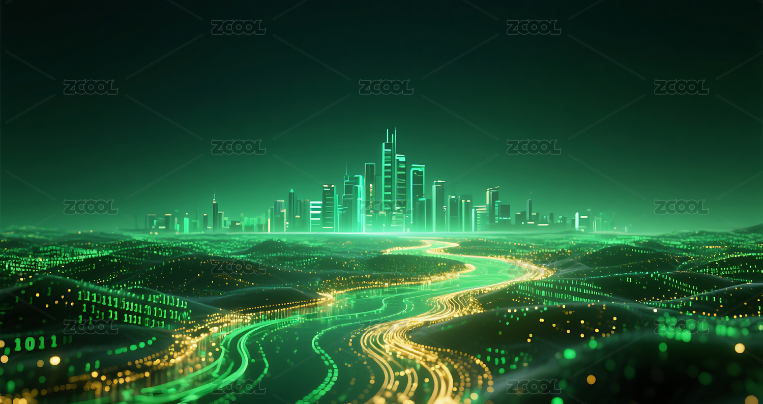 科技感未来城市数字城市绿色科技背景