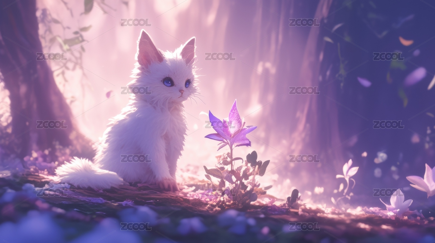 梦幻,空灵,紫色,九尾狐,背景,玉石,抽象