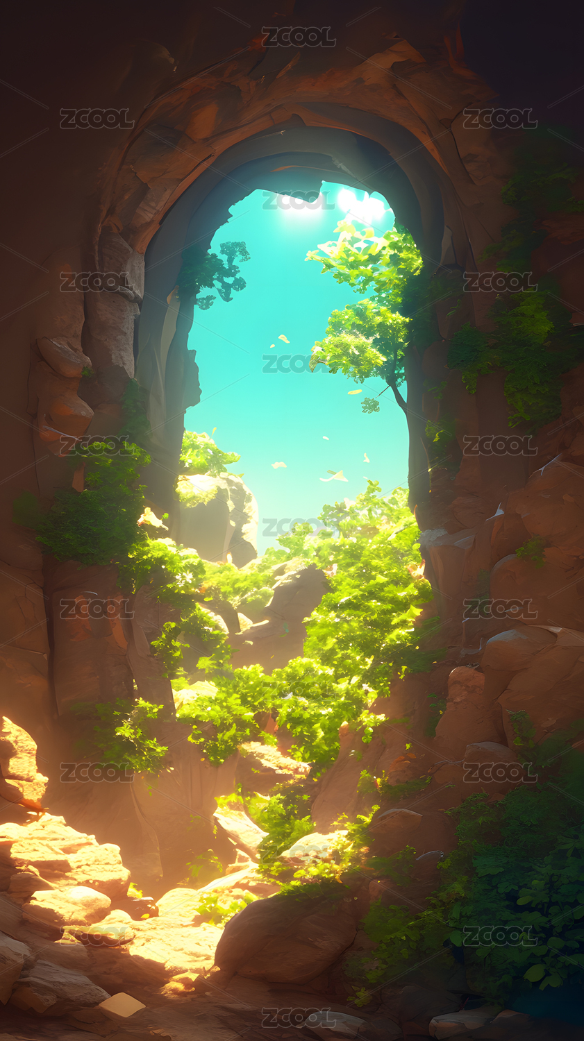 阳光穿过洞穴卡通插画