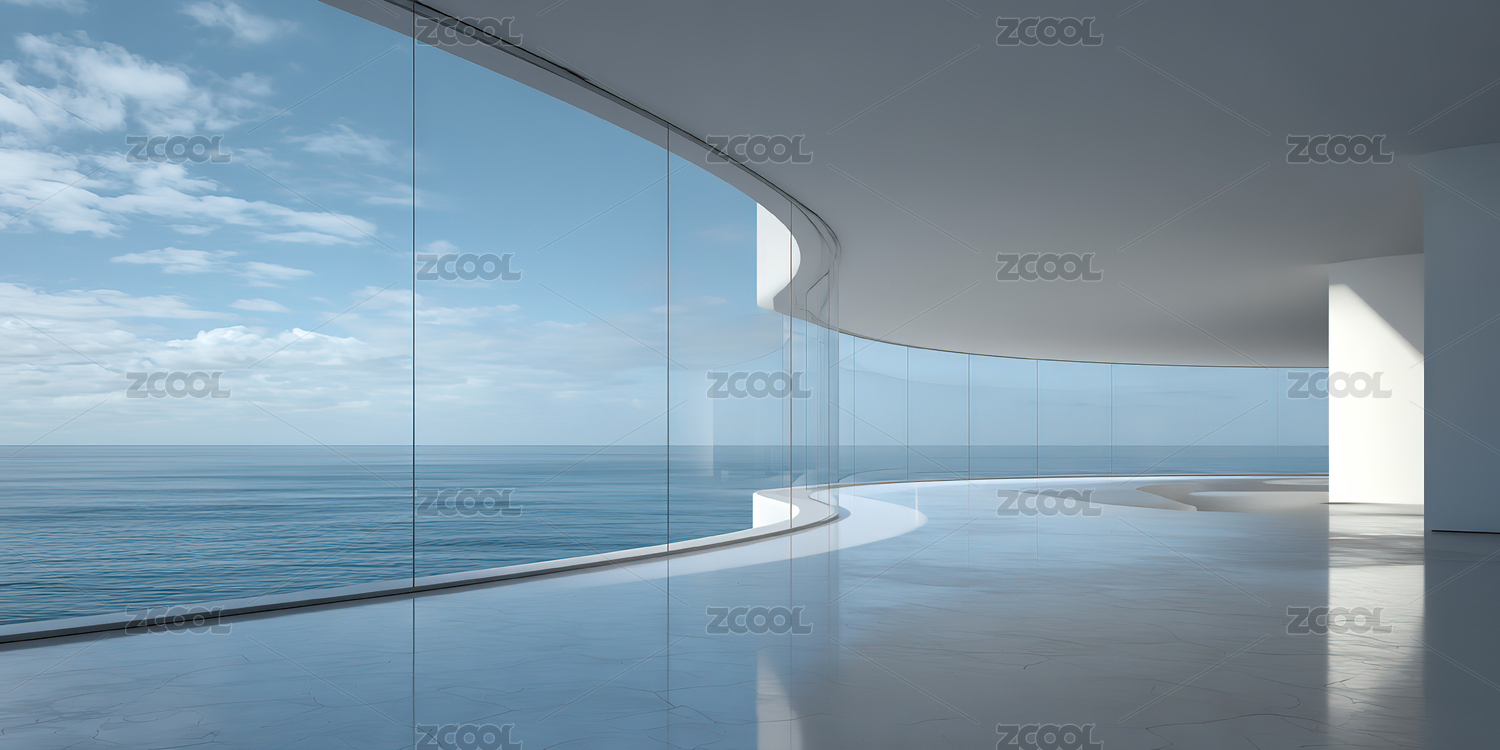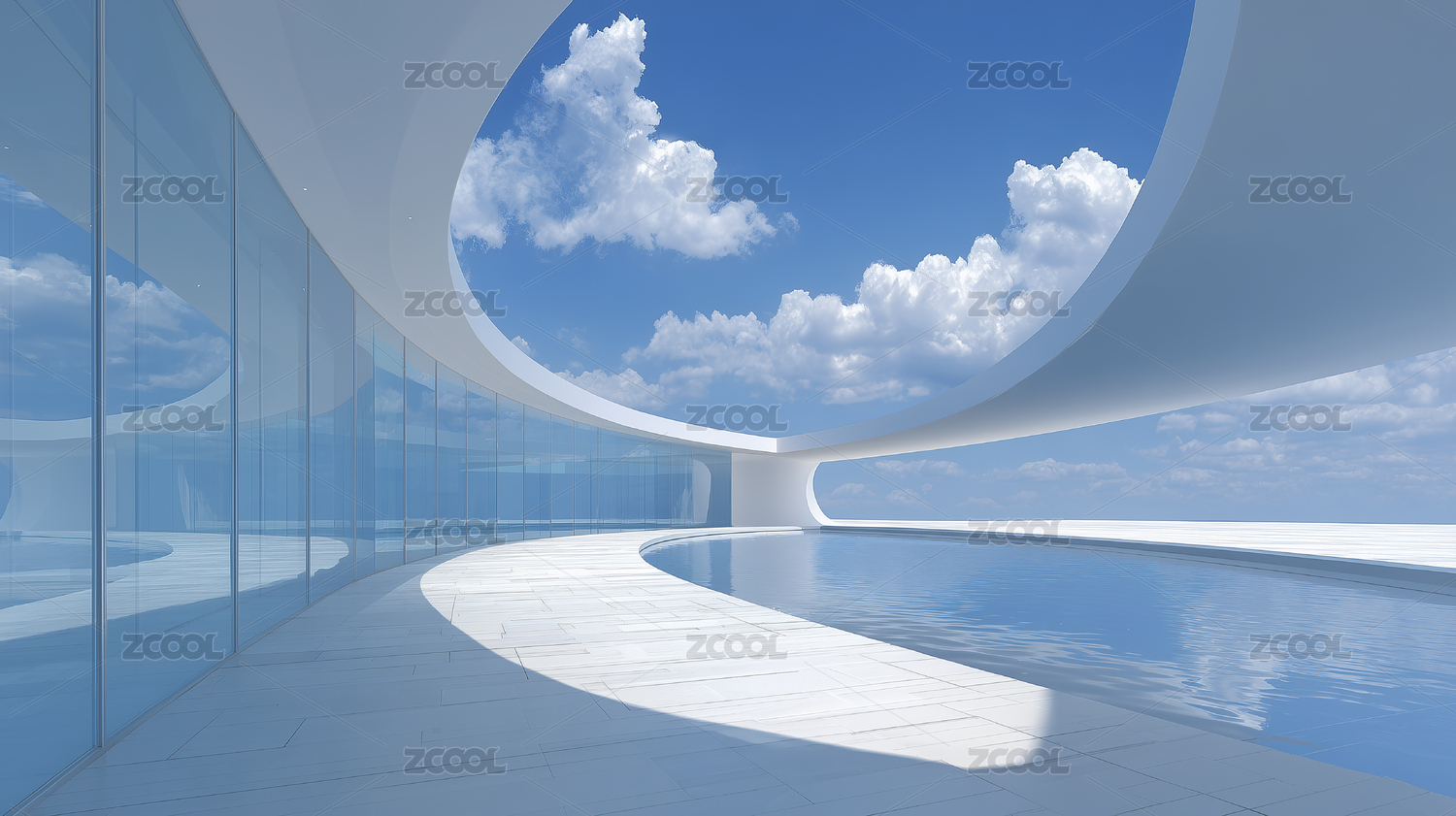 建筑,未来,极简,表面,曲线,白色,玻璃墙,无缝,天空,蓝色