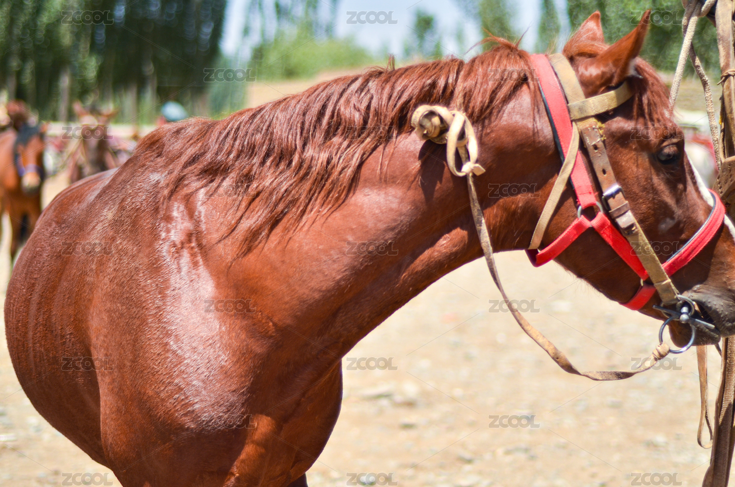 户外马匹的头部特写