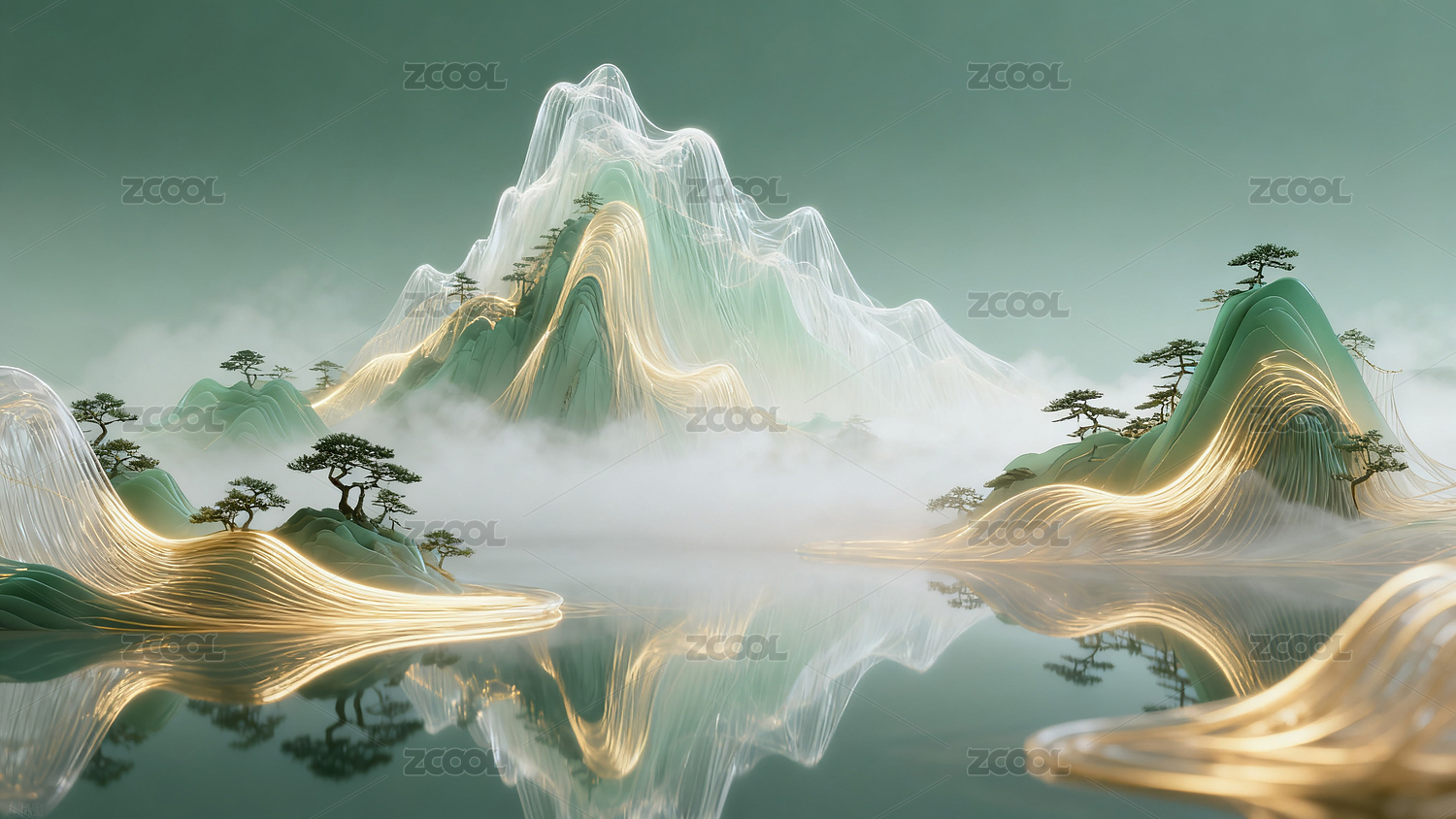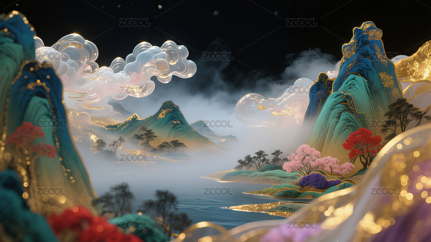 背景,立体,金色,抽象,黑色,古风,金箔,岩彩,刺绣,云雾