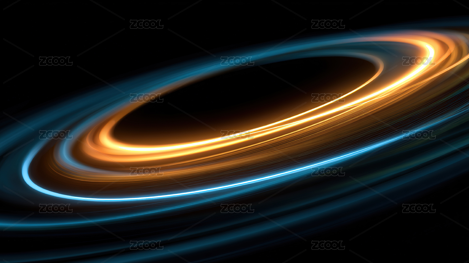 宇宙太空中金色灿烂且迷人的光轨环形图案