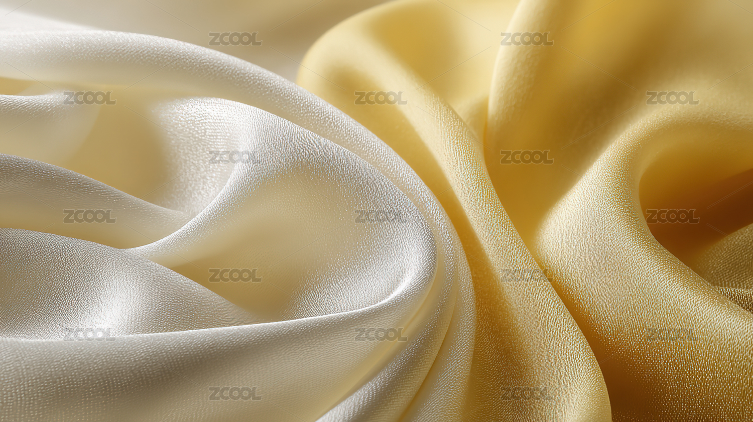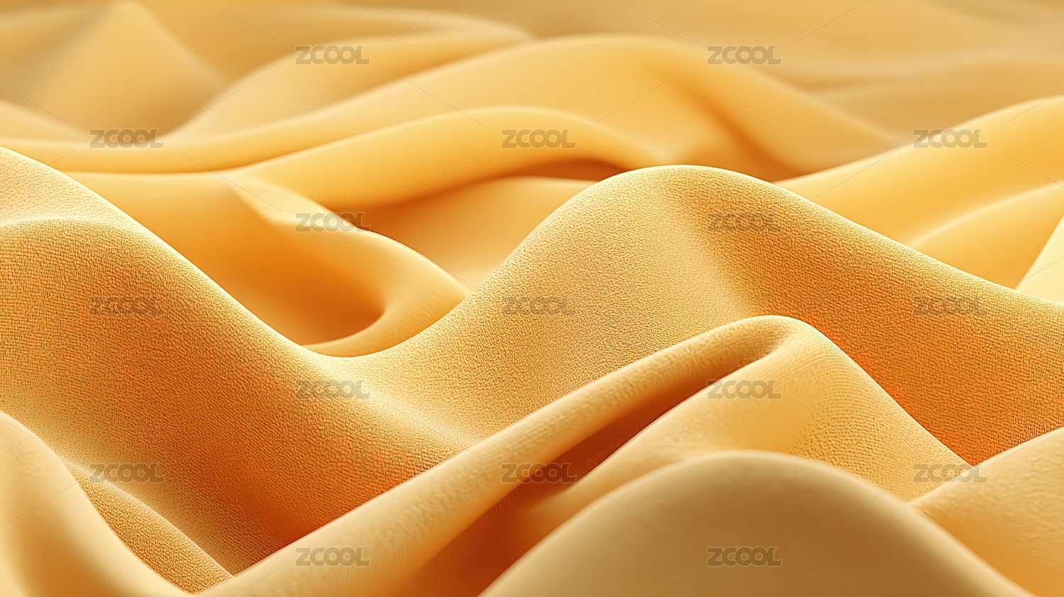 柔软的金黄色丝绸布料褶皱流畅充满质感