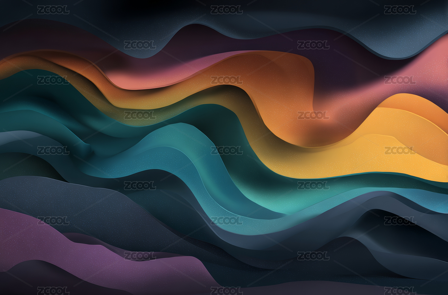 彩色波浪层叠抽象图案