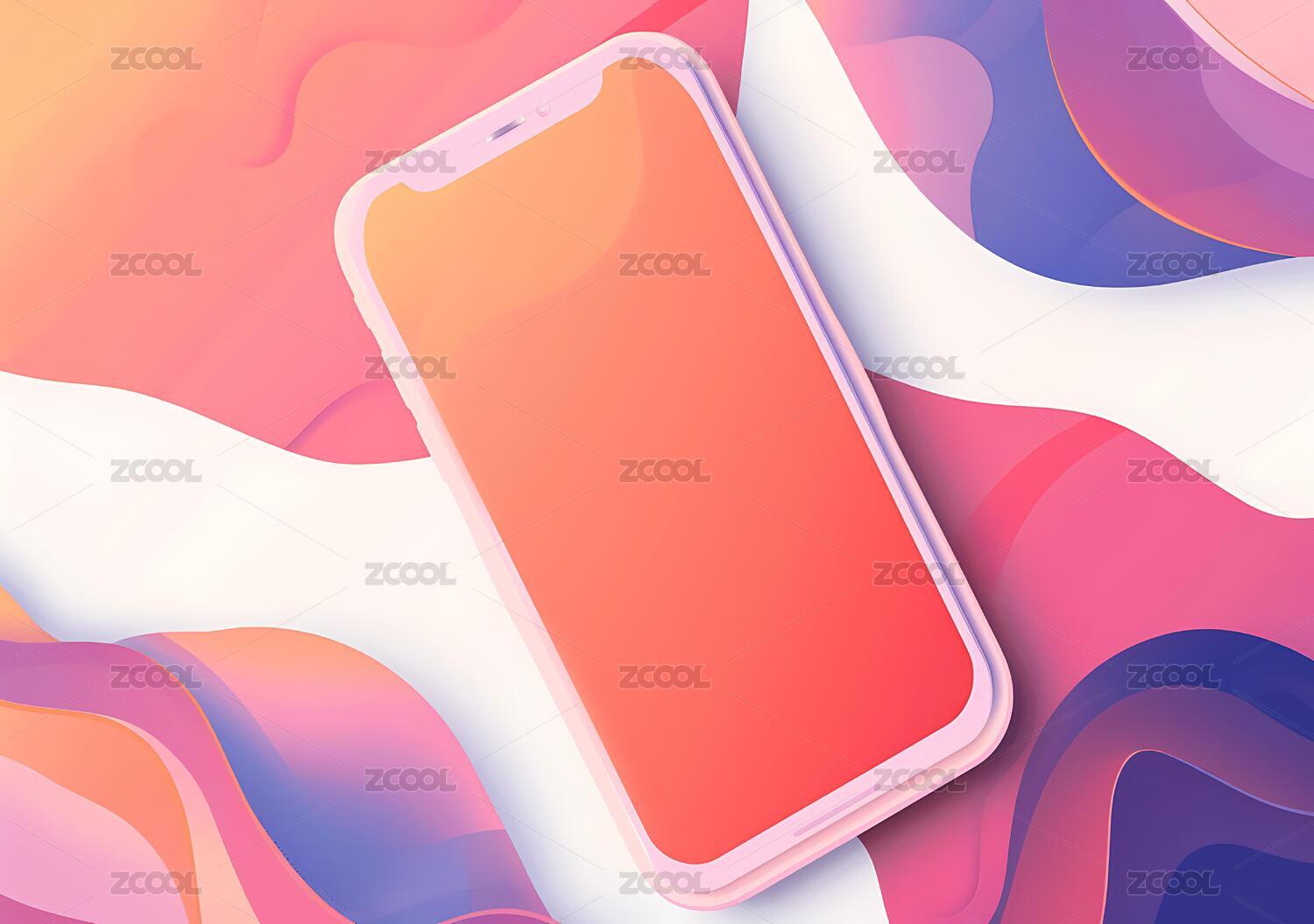 彩色抽象背景上的手机模型
