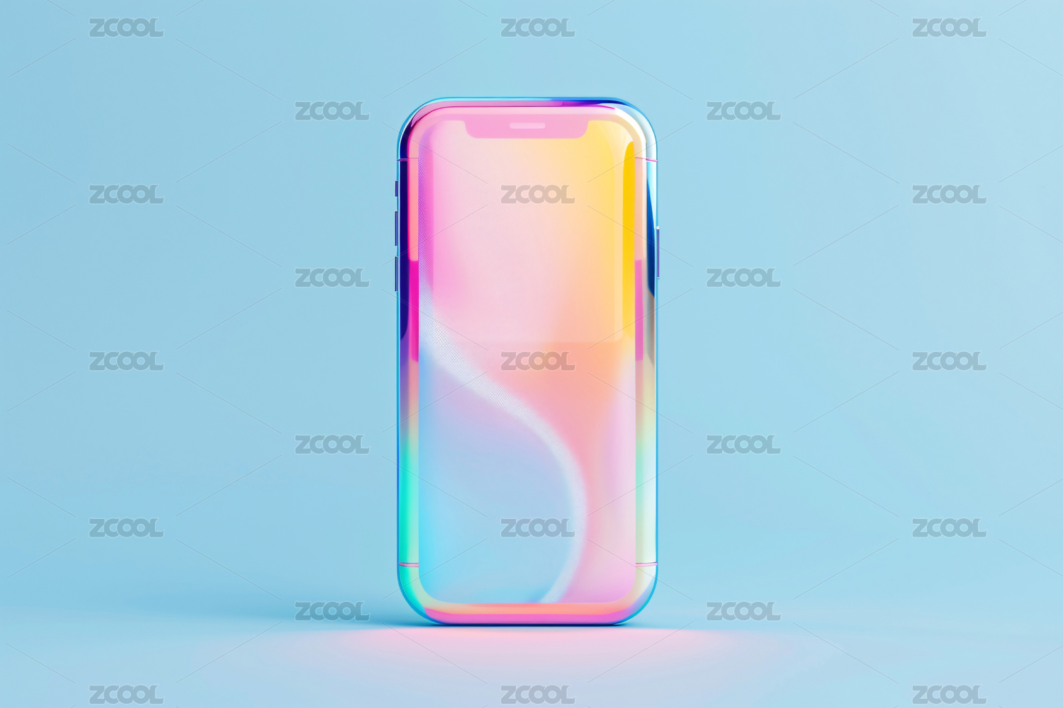 空白的智能手机屏幕模型和多彩背景