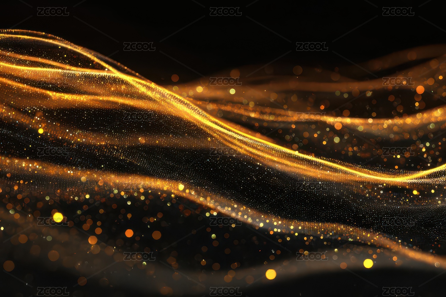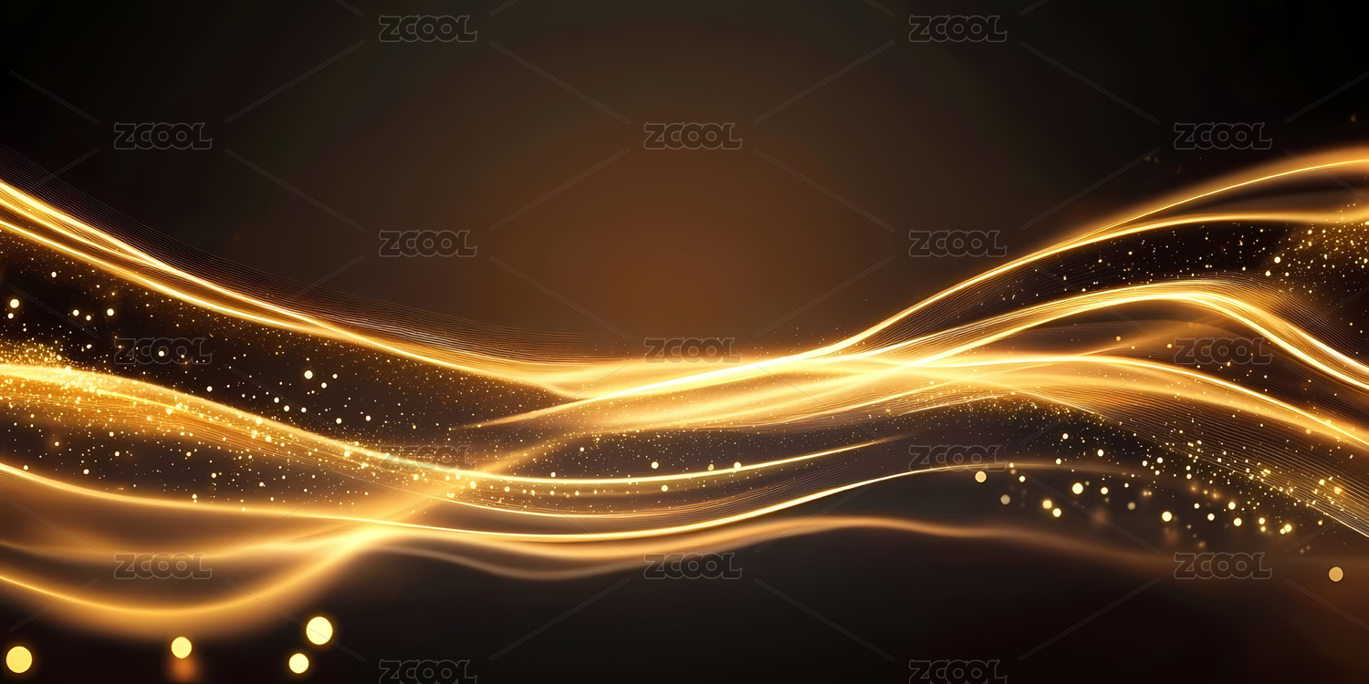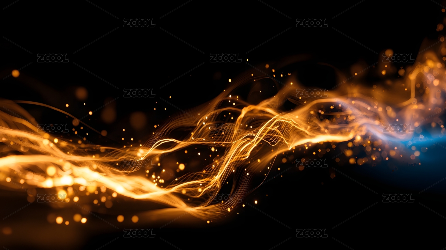 金色光流在黑暗中蜿蜒闪烁的抽象光影艺术