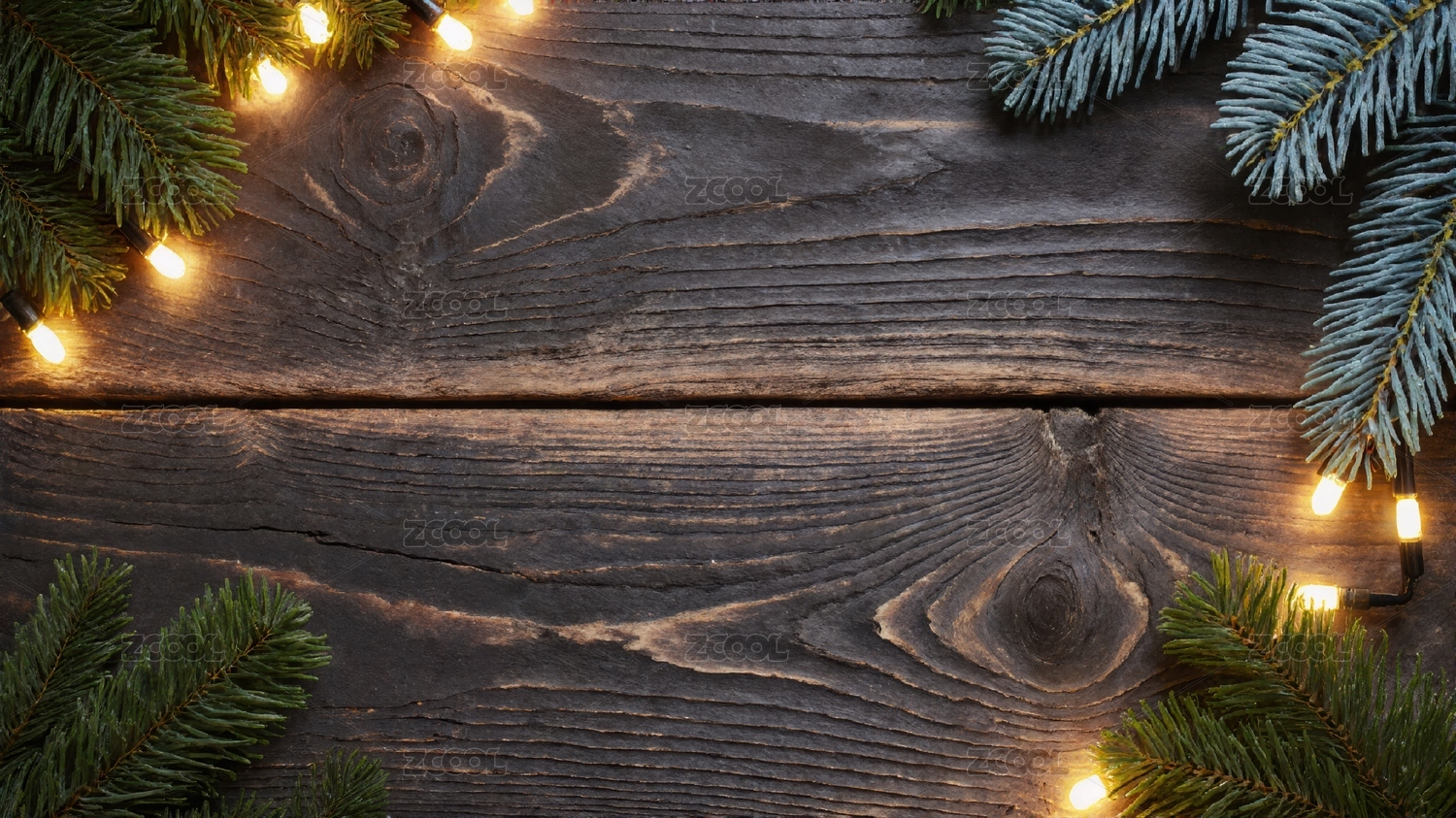 圣诞节木板背景,松枝和装饰品