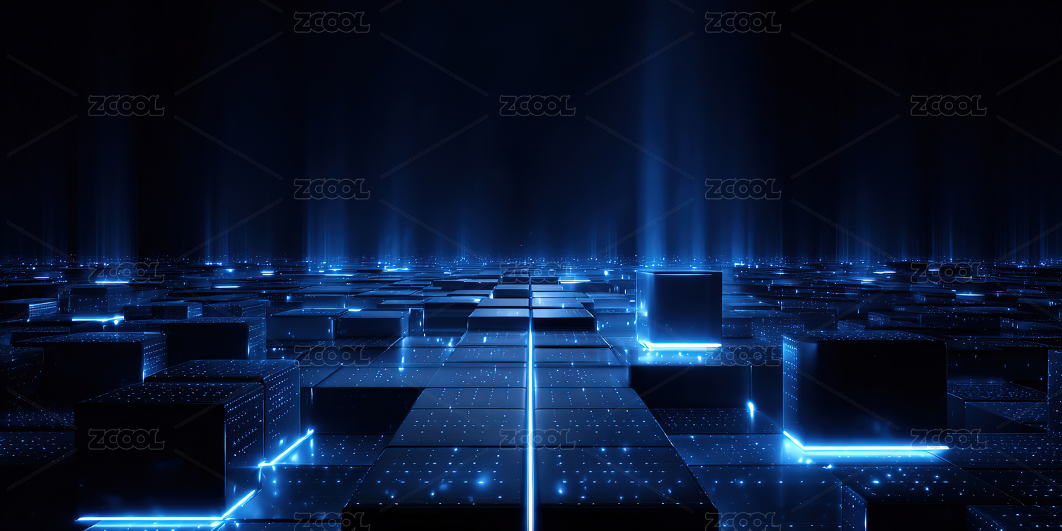 科技感蓝色数据流隧道矩阵空间背景壁纸