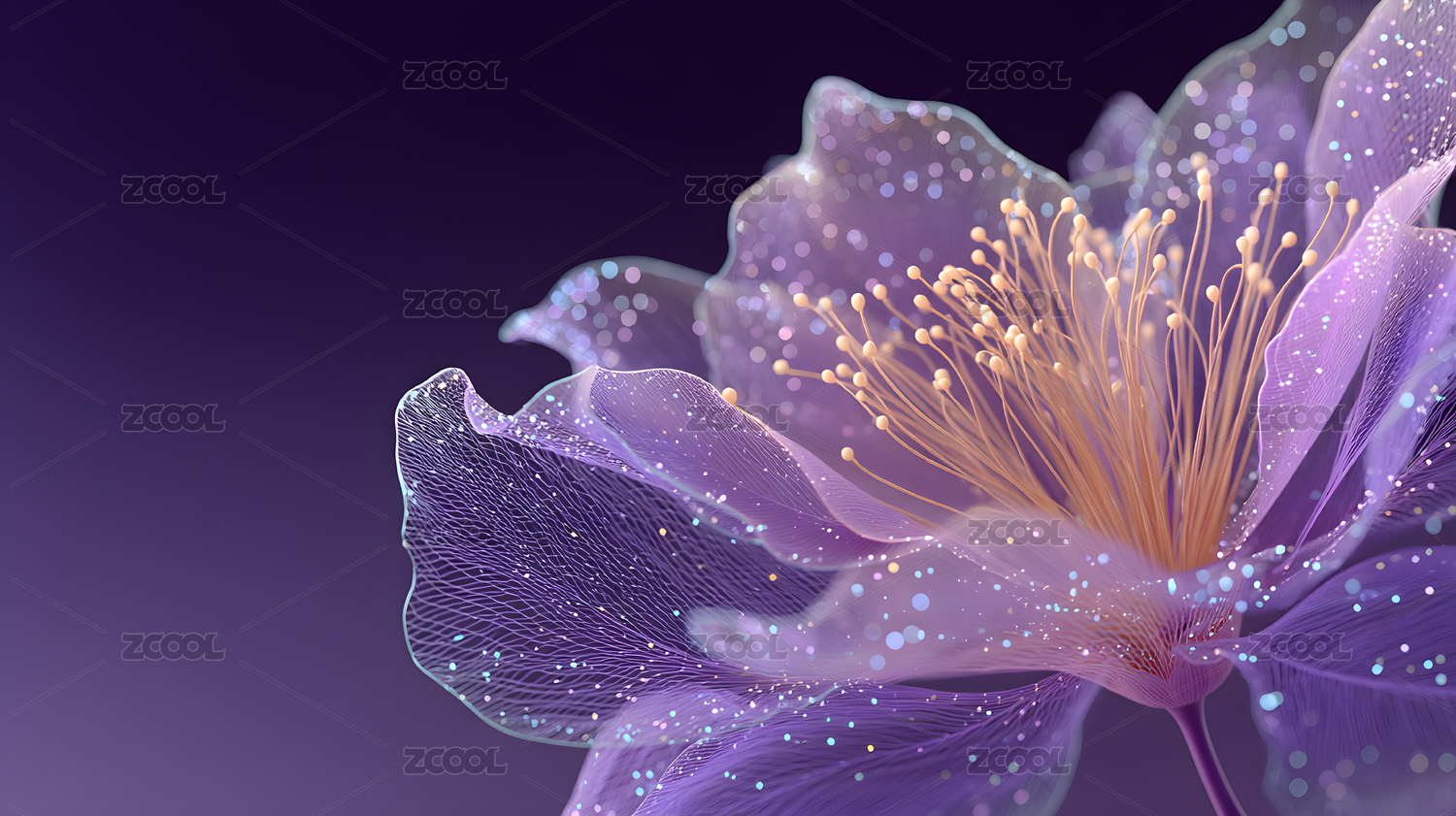 深紫百合水珠梦幻花卉场景设计图