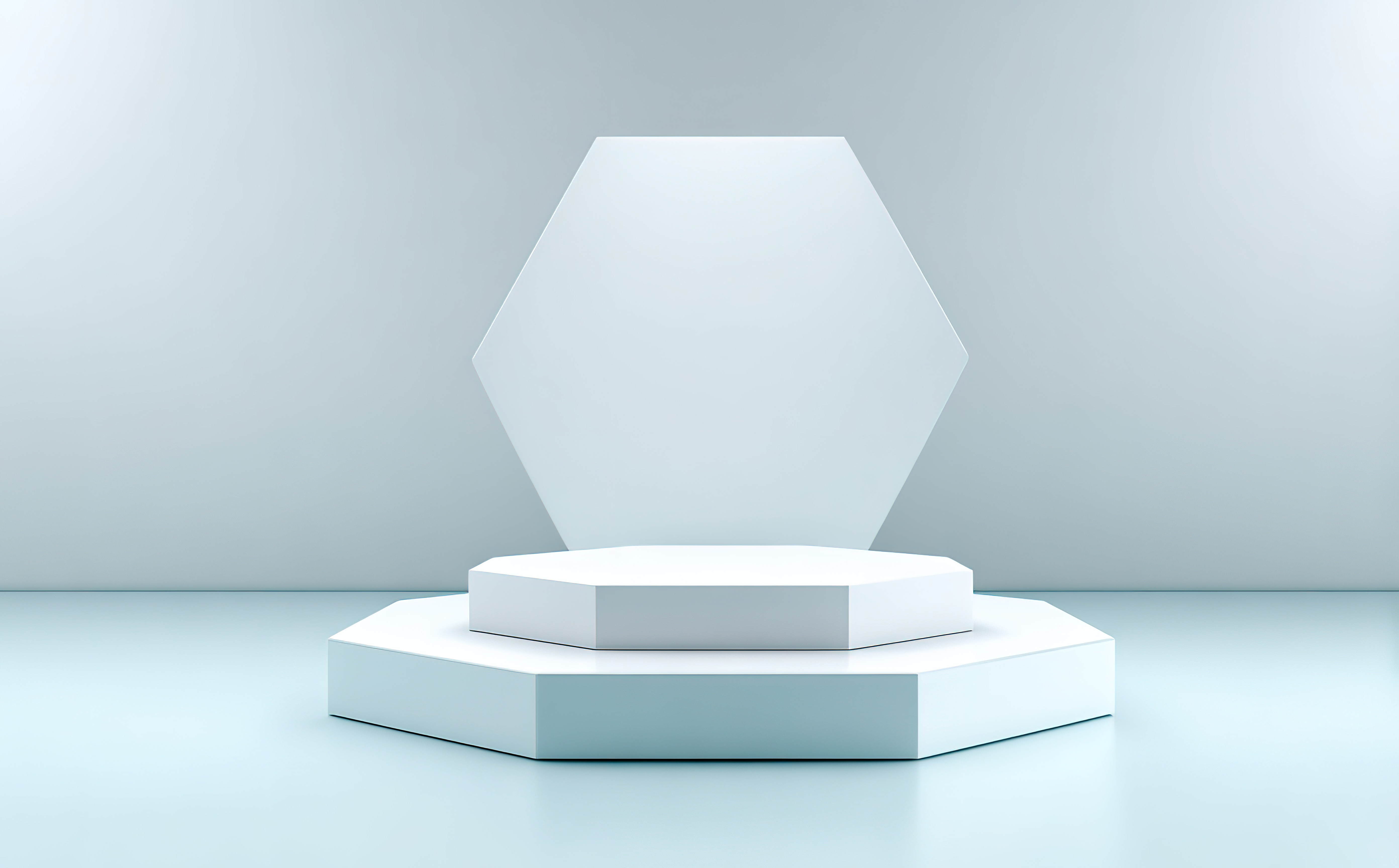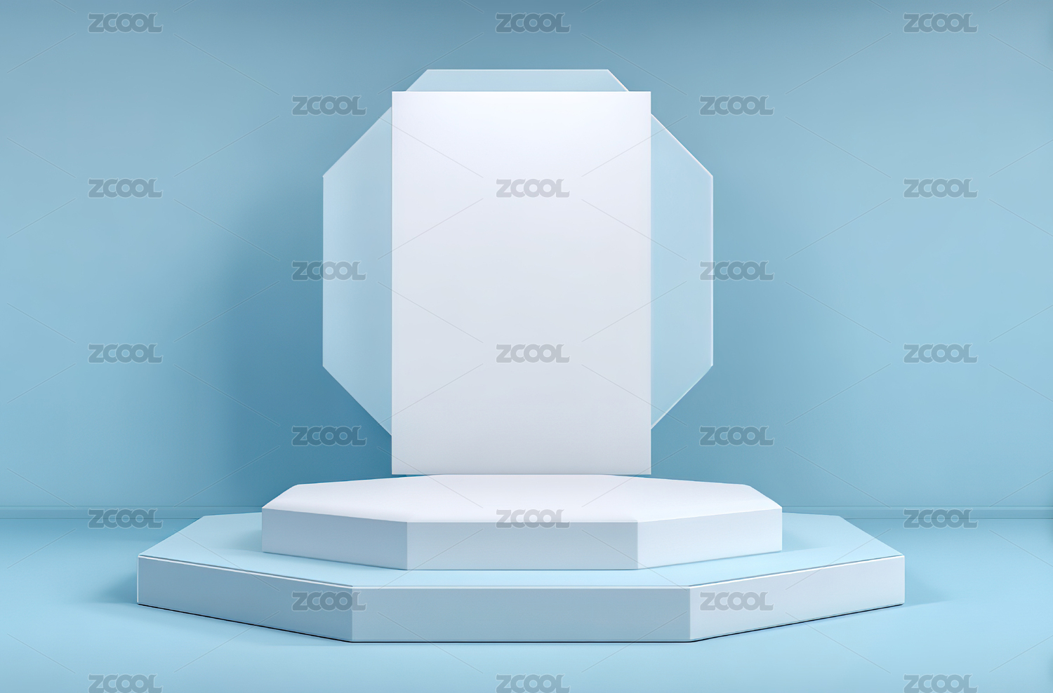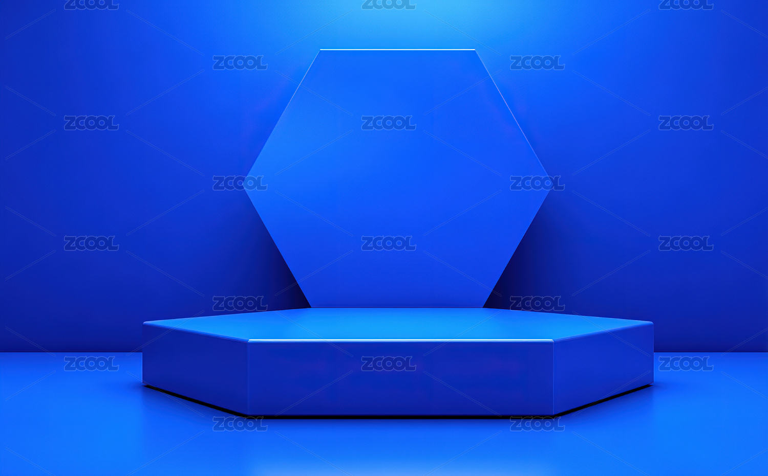 蓝色背景下的六边形几何台座