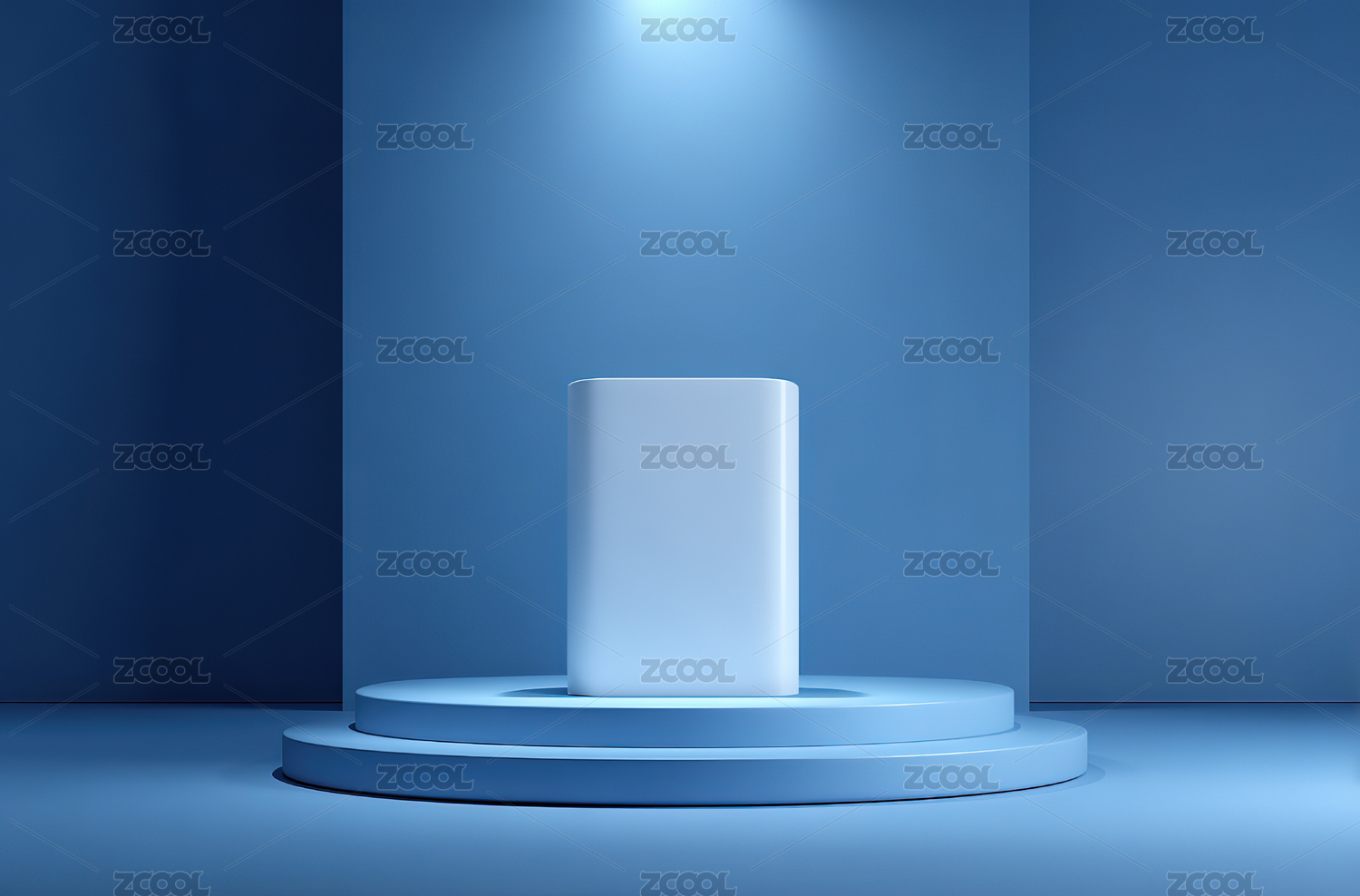 蓝色光效中的白色立方体展示台