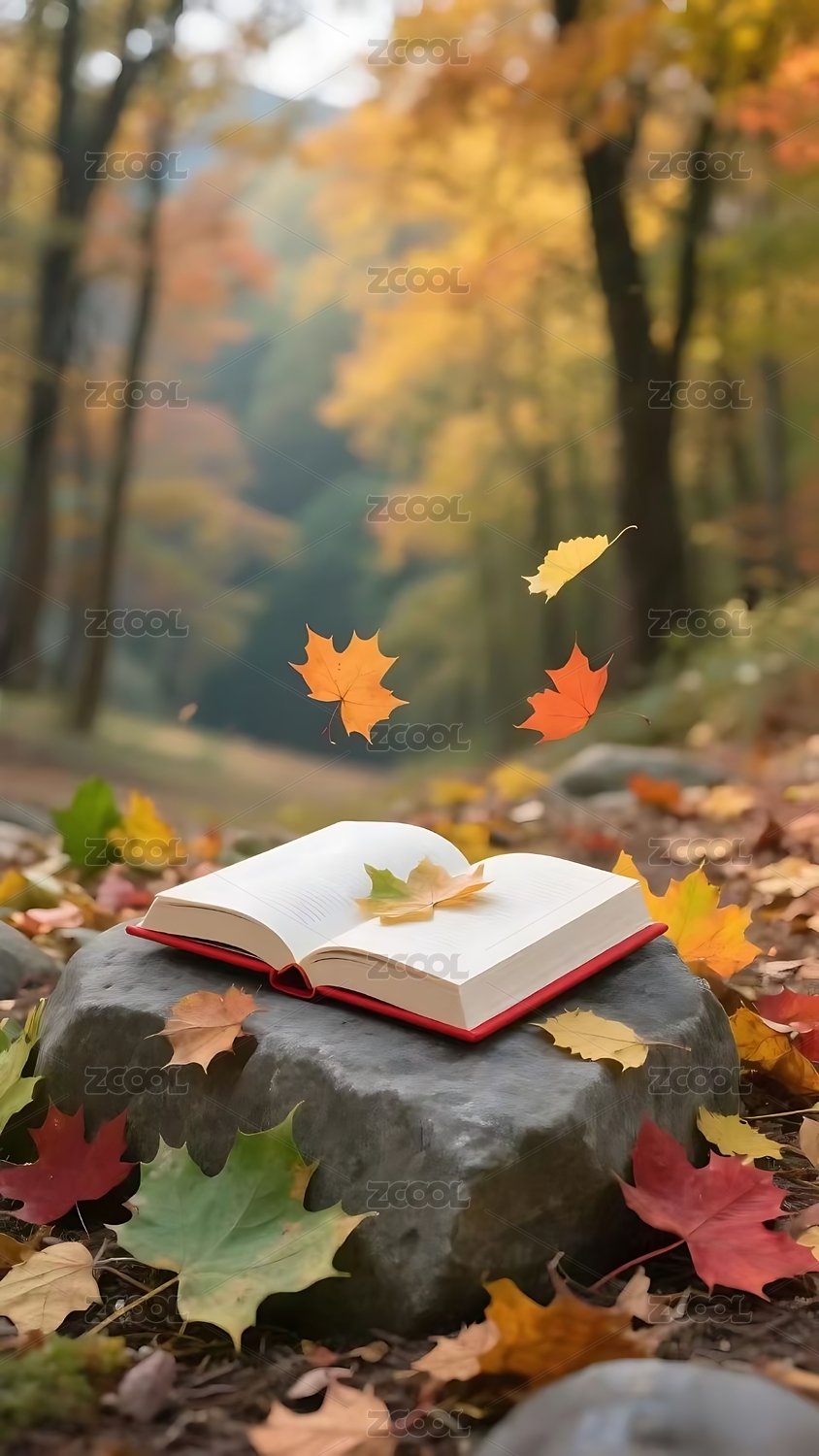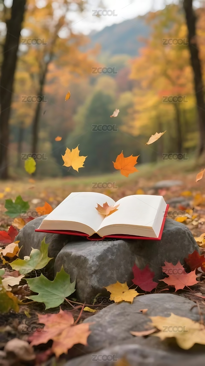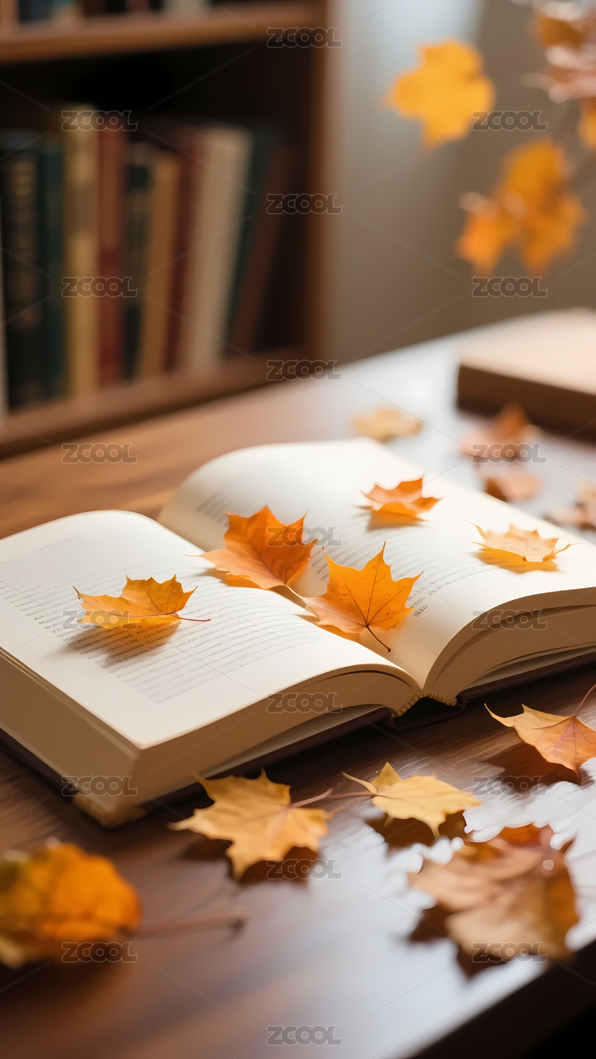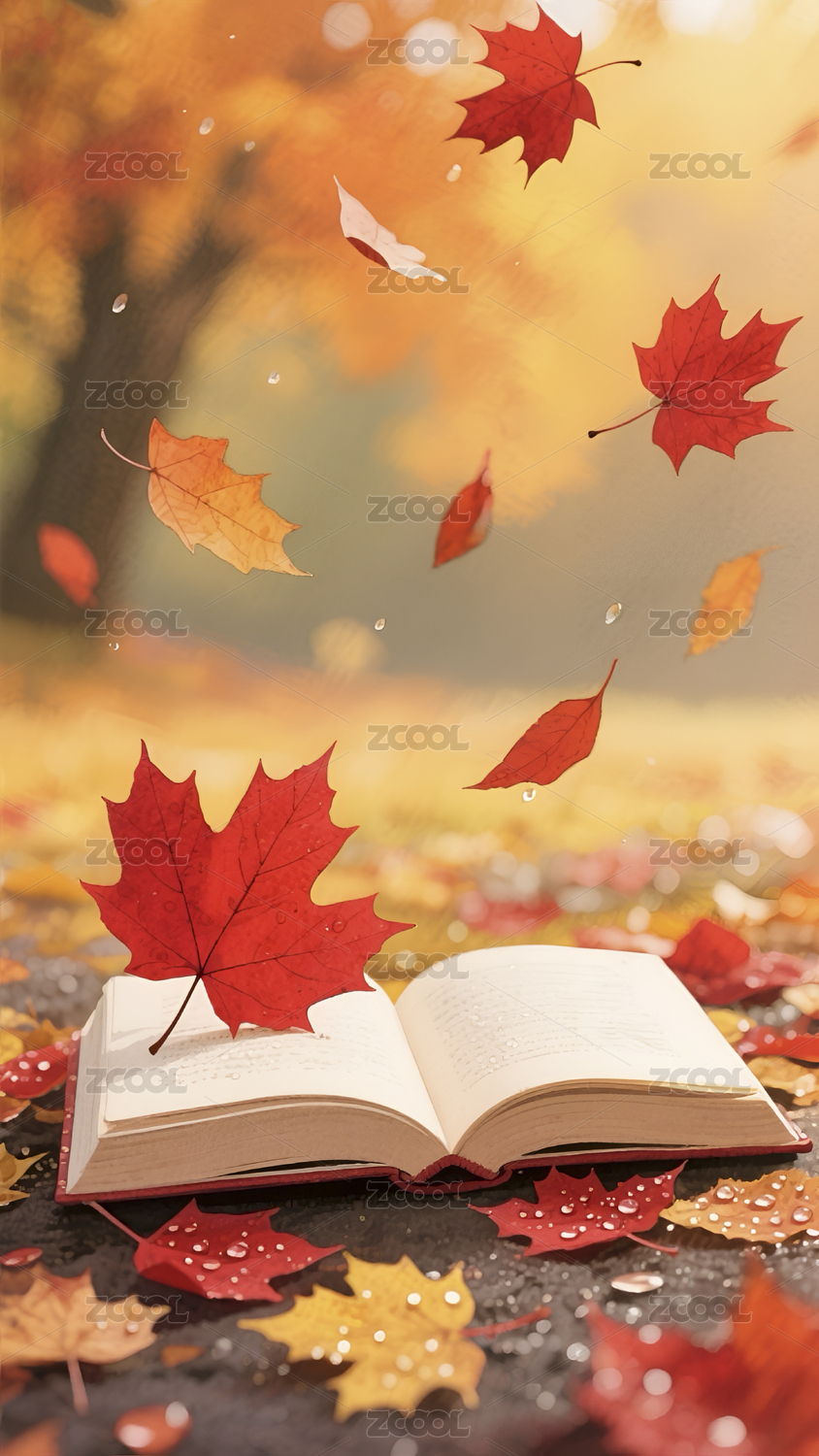 秋天, 书本, 音乐, 落叶, 金色, 阅读, 音符, 自然, 温暖, 文艺