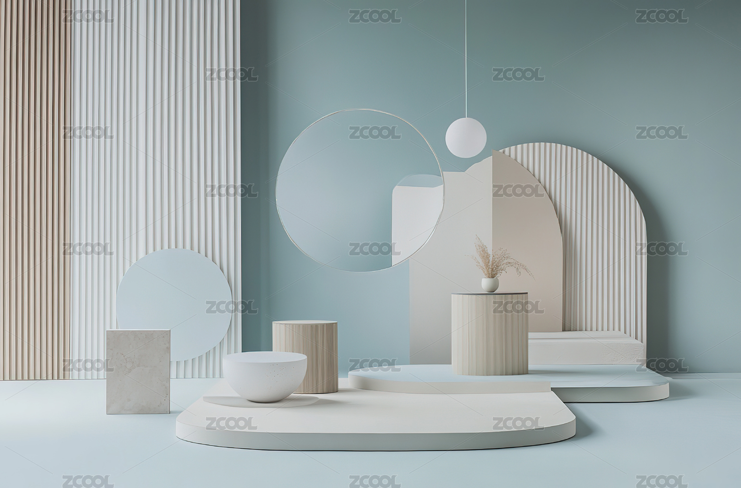 背景,几何图形,球体,圆柱体,立方体,圆形,弧形,色彩,现代,简约