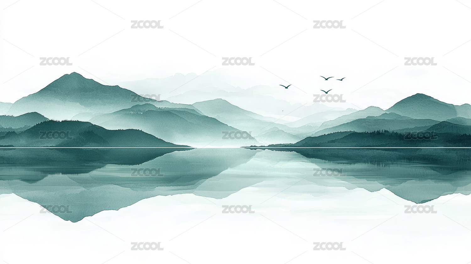 山水画,中国画,水墨画,山峰,山峦,云雾,飞鸟,意境,插画