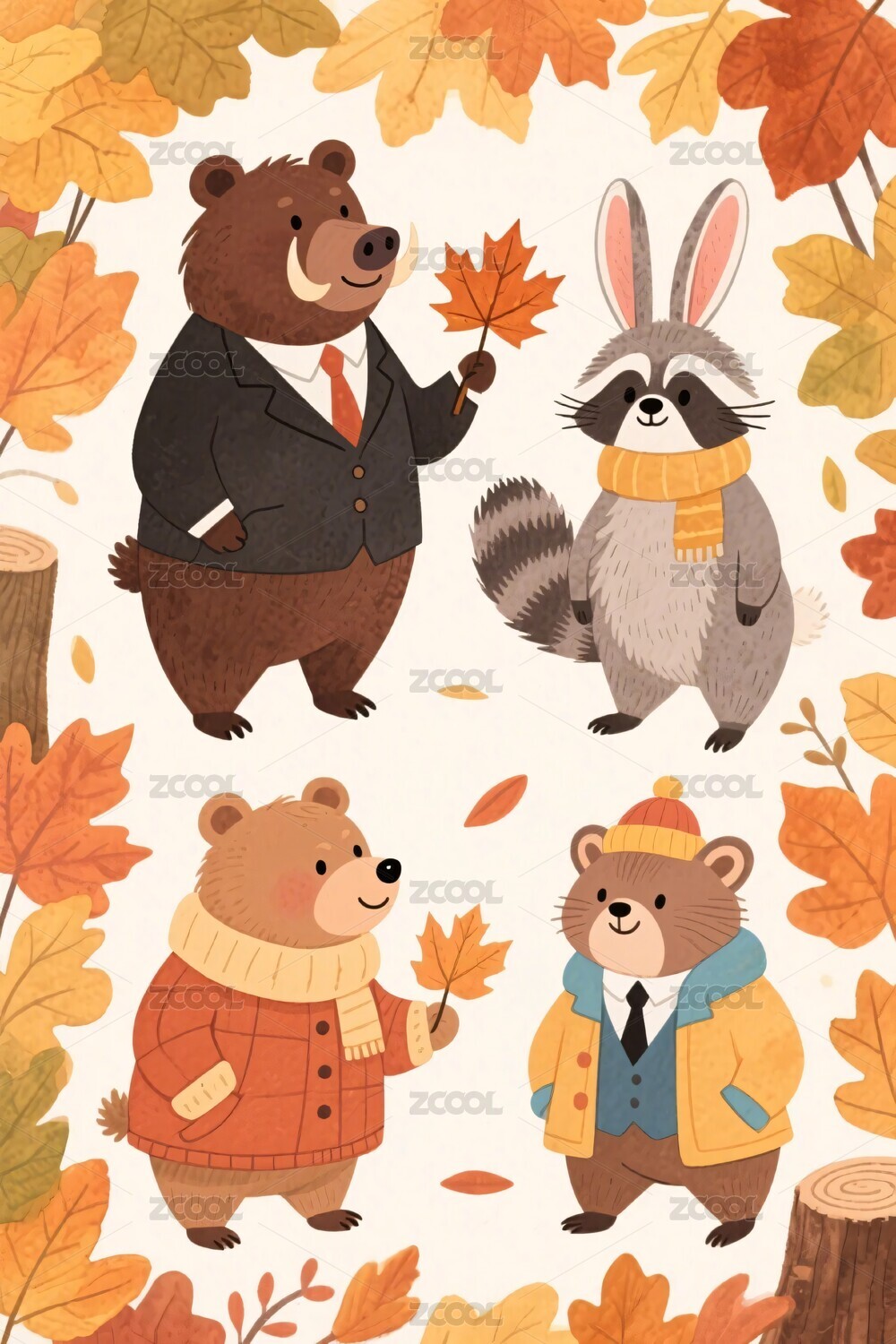 秋季卡通动物插画