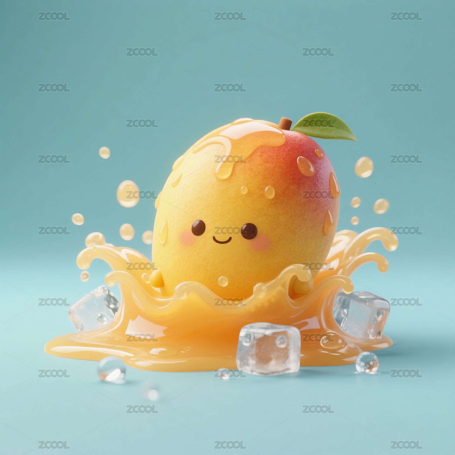 芒果,芒果汁,可爱,水花,浪花,宝宝,叶子,水滴,水珠