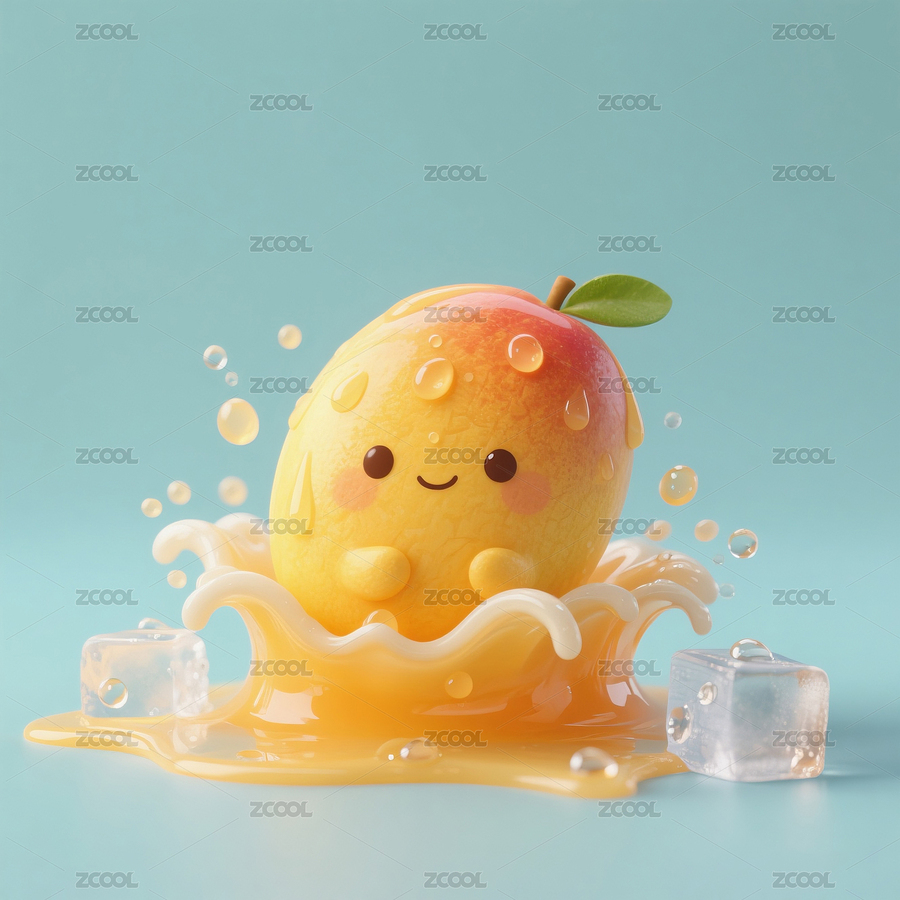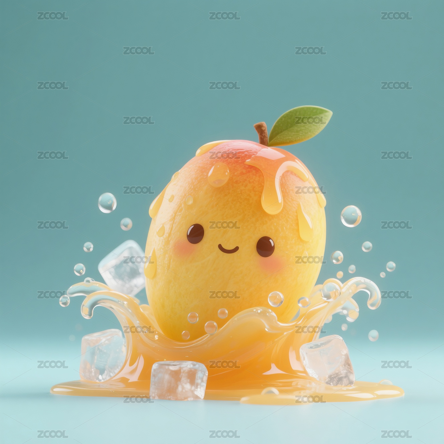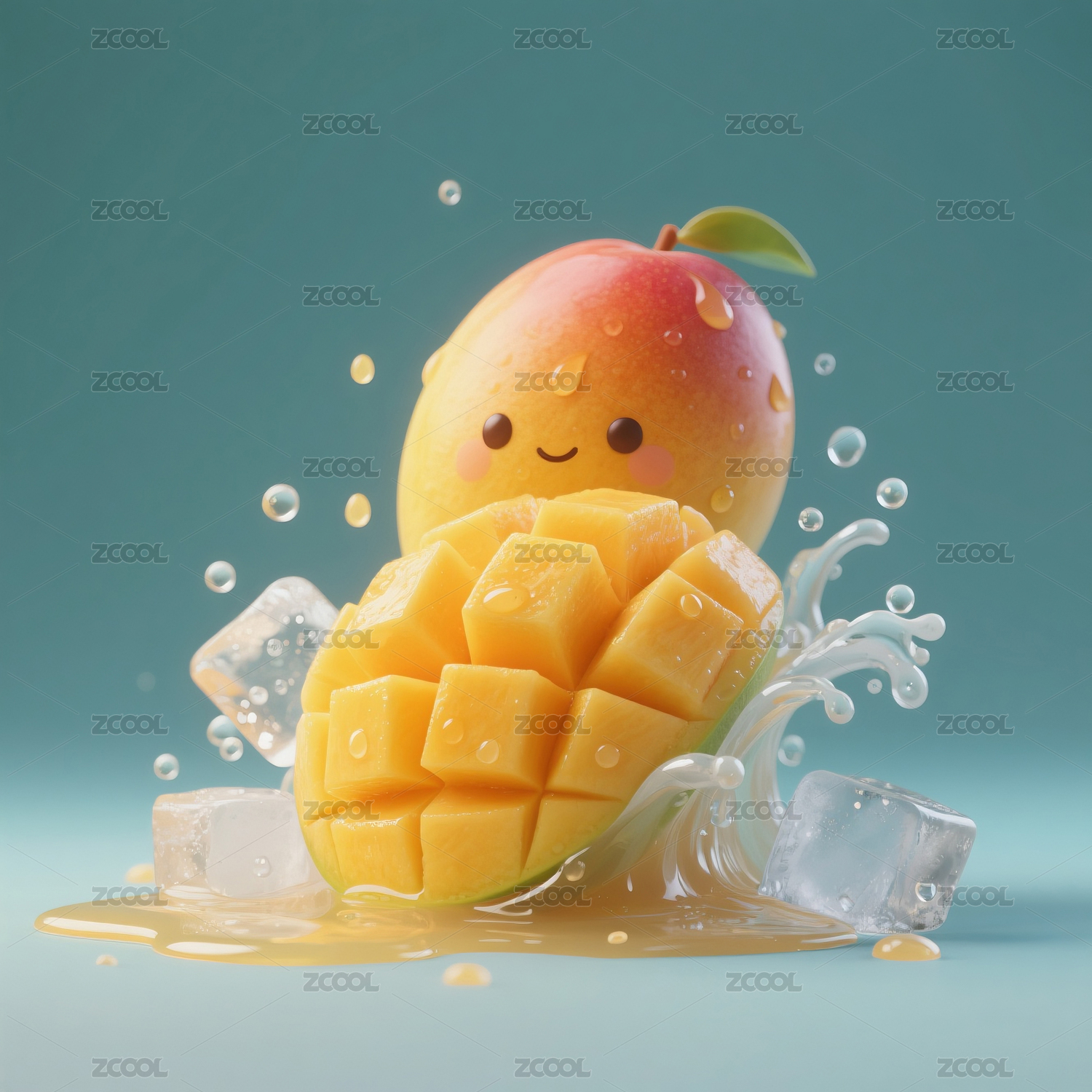 芒果,冰块,宝宝,可爱,水花,浪花,水滴,水珠,树叶,叶子