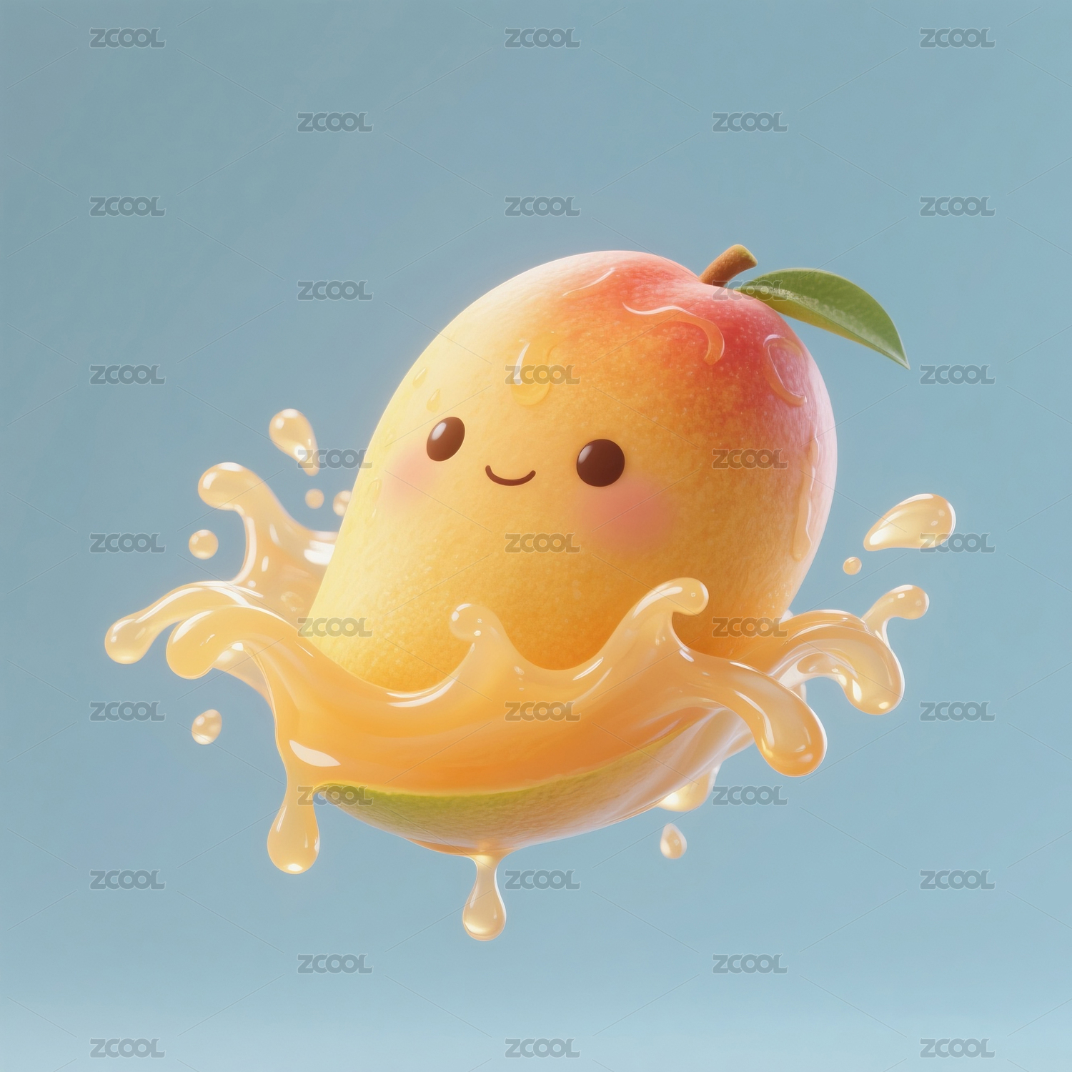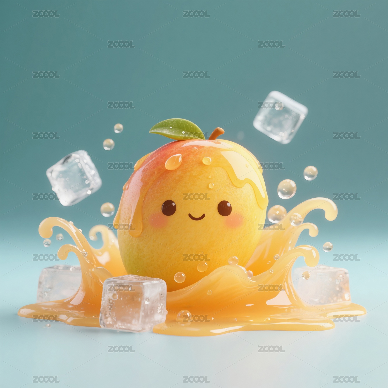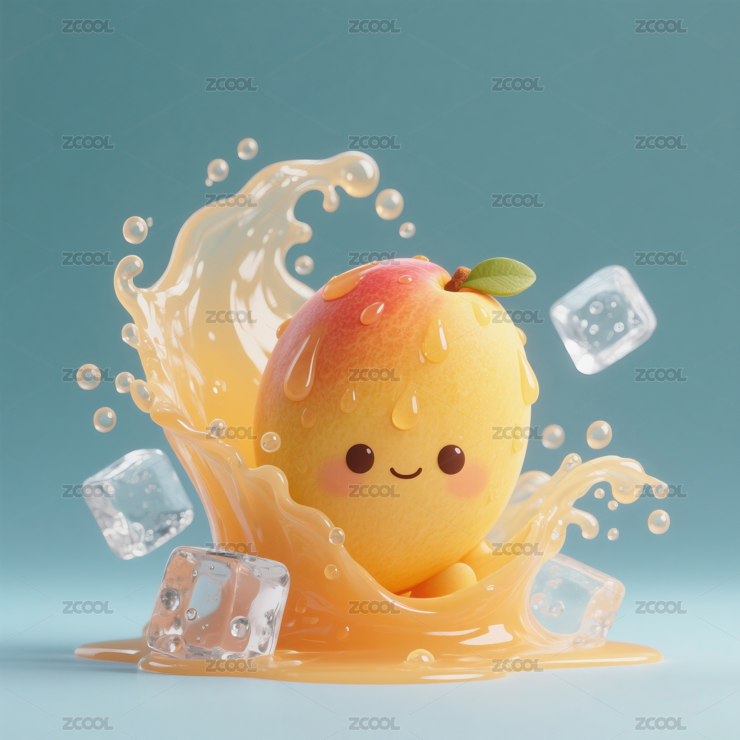 芒果,冰块,宝宝,可爱,水花,浪花,水滴,水珠,树叶,叶子