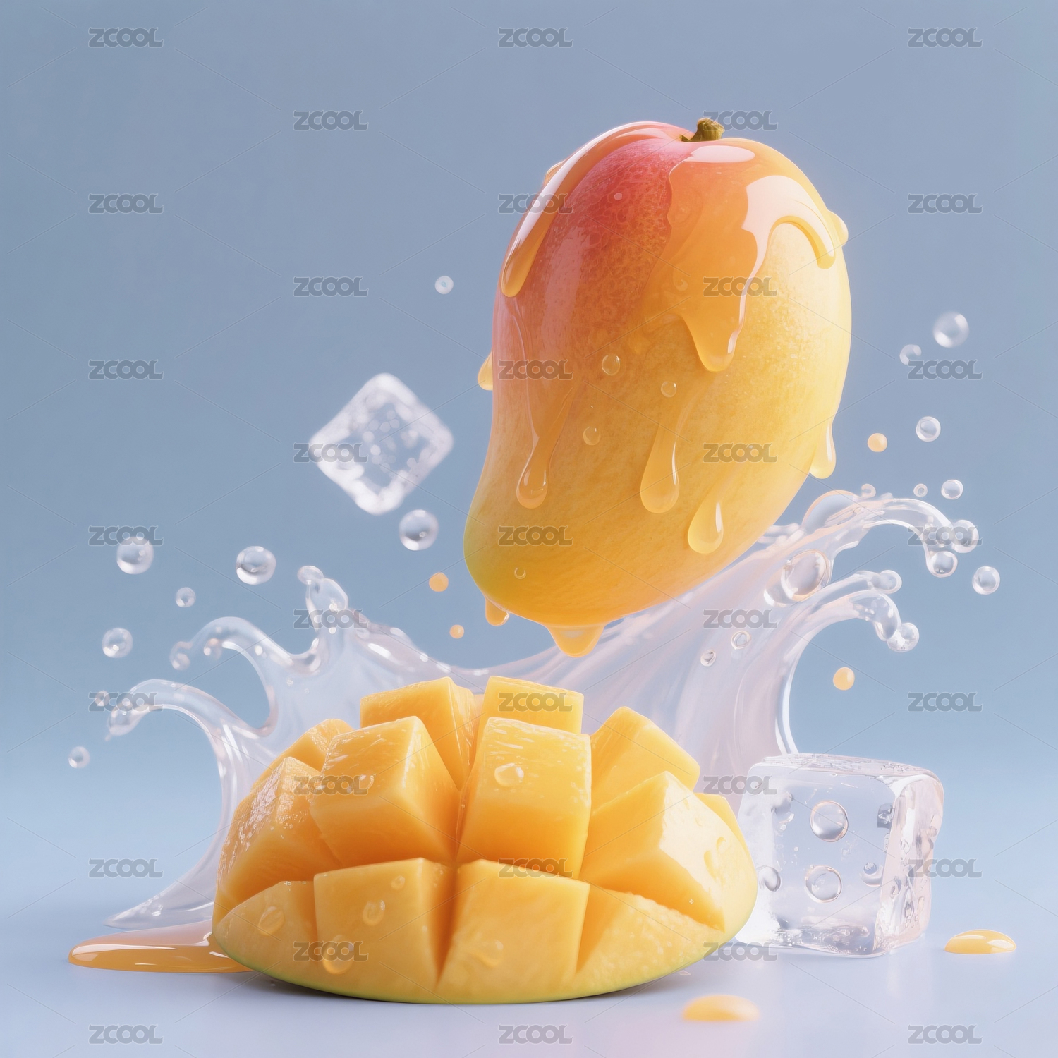 芒果,冰块,水花,浪花,水滴,水珠,芒果肉