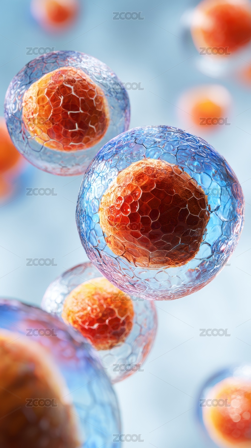 桔色高清皮肤细胞精华液分子结构化妆品素材