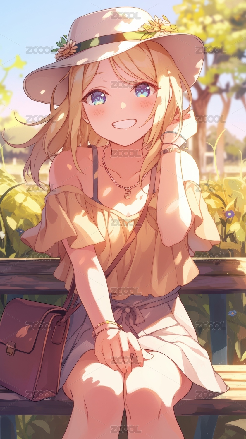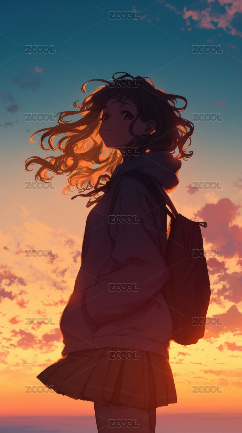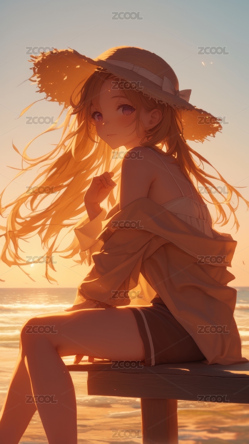 卡通,插画,微笑,户外,人物,风景,可爱,艺术,青春,海边