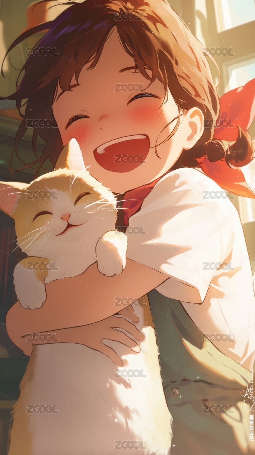 卡通,插画,微笑,温馨,温暖,可爱,艺术,女孩,互动,情感