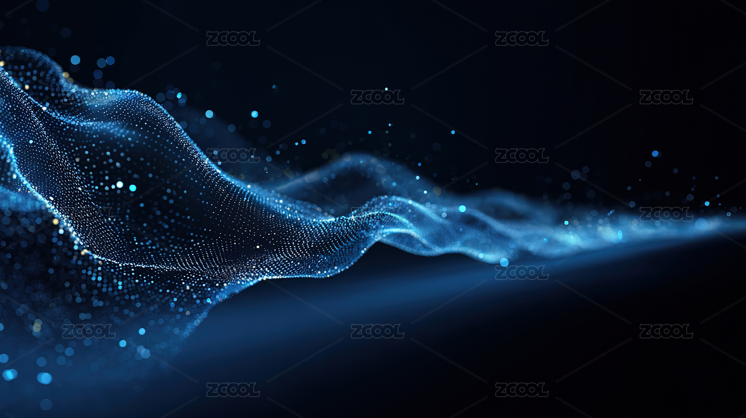 蓝色发光能量粒子和线条的明亮波抽象背景