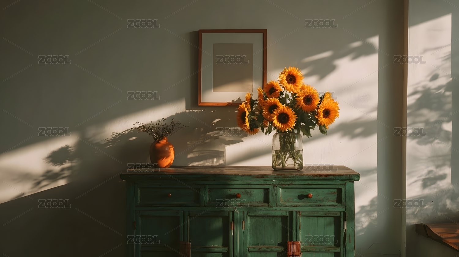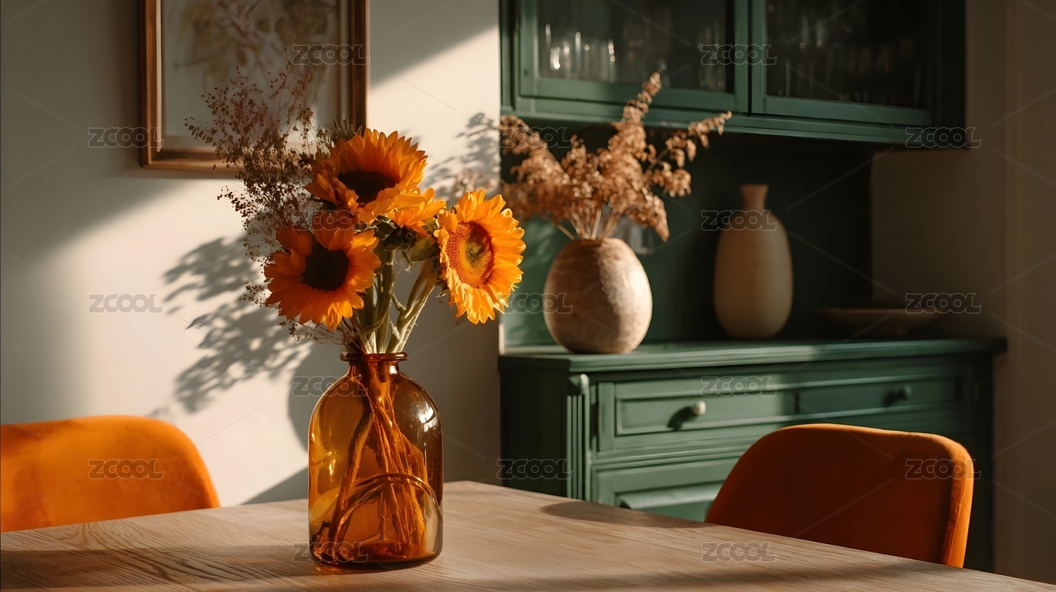 室内,植物,阳光,窗户,装饰,椅子,画框,桌子,花瓶,墙壁