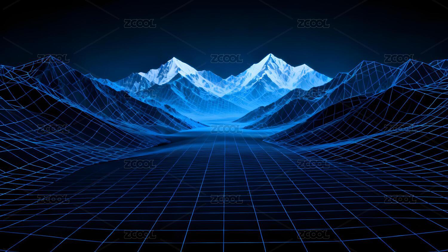 背景,蓝色,发光,星空,夜空,星星,山峰,地形,未来,网格