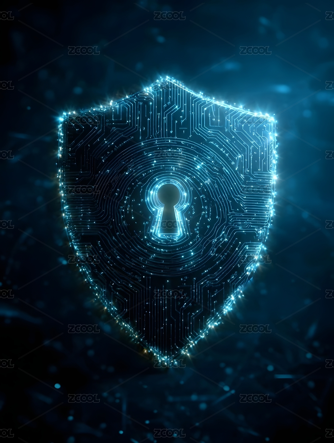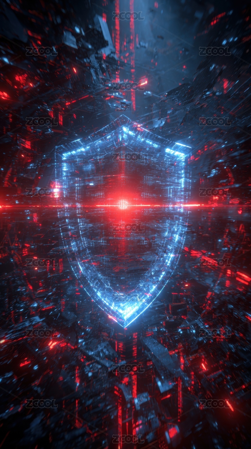 蓝色发光的盾牌象征保护与安全