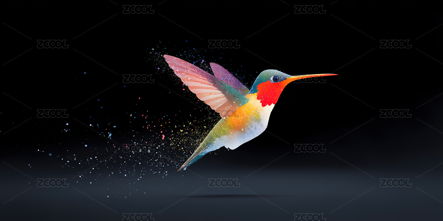 炫彩蜂鸟飞舞黑夜